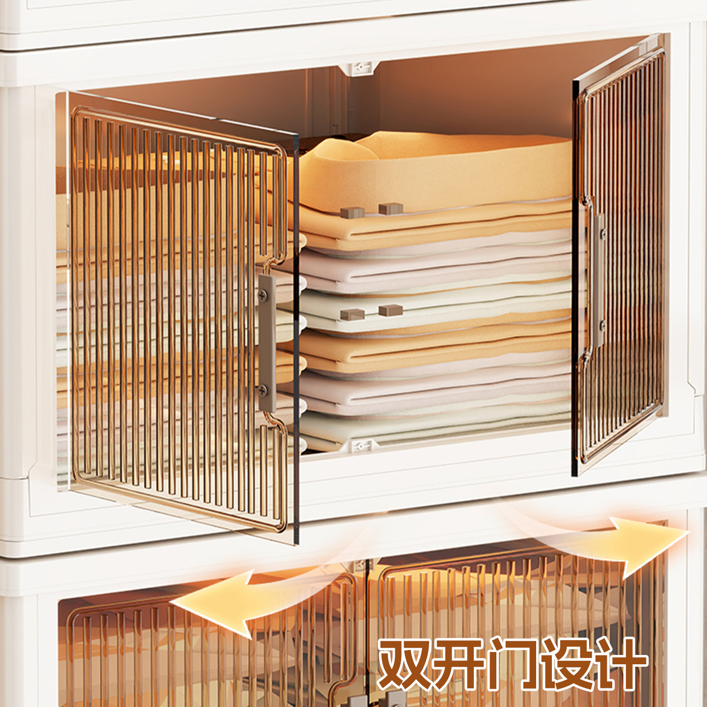 卧室衣服收纳架家用多功能大容量置物架双开门可叠加多层储物箱子