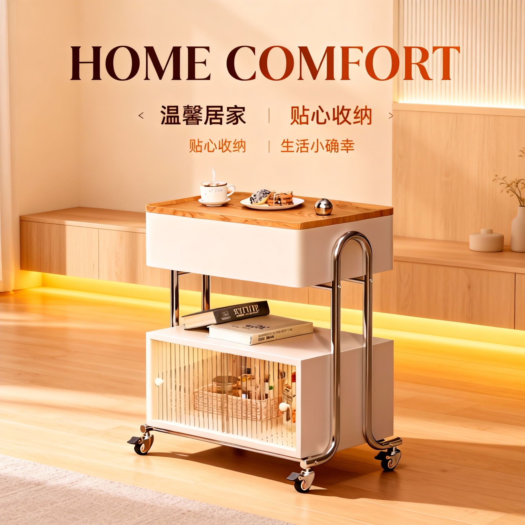 可移动小推车收纳置物架床头柜沙发边几茶几零食收纳架子客厅双层