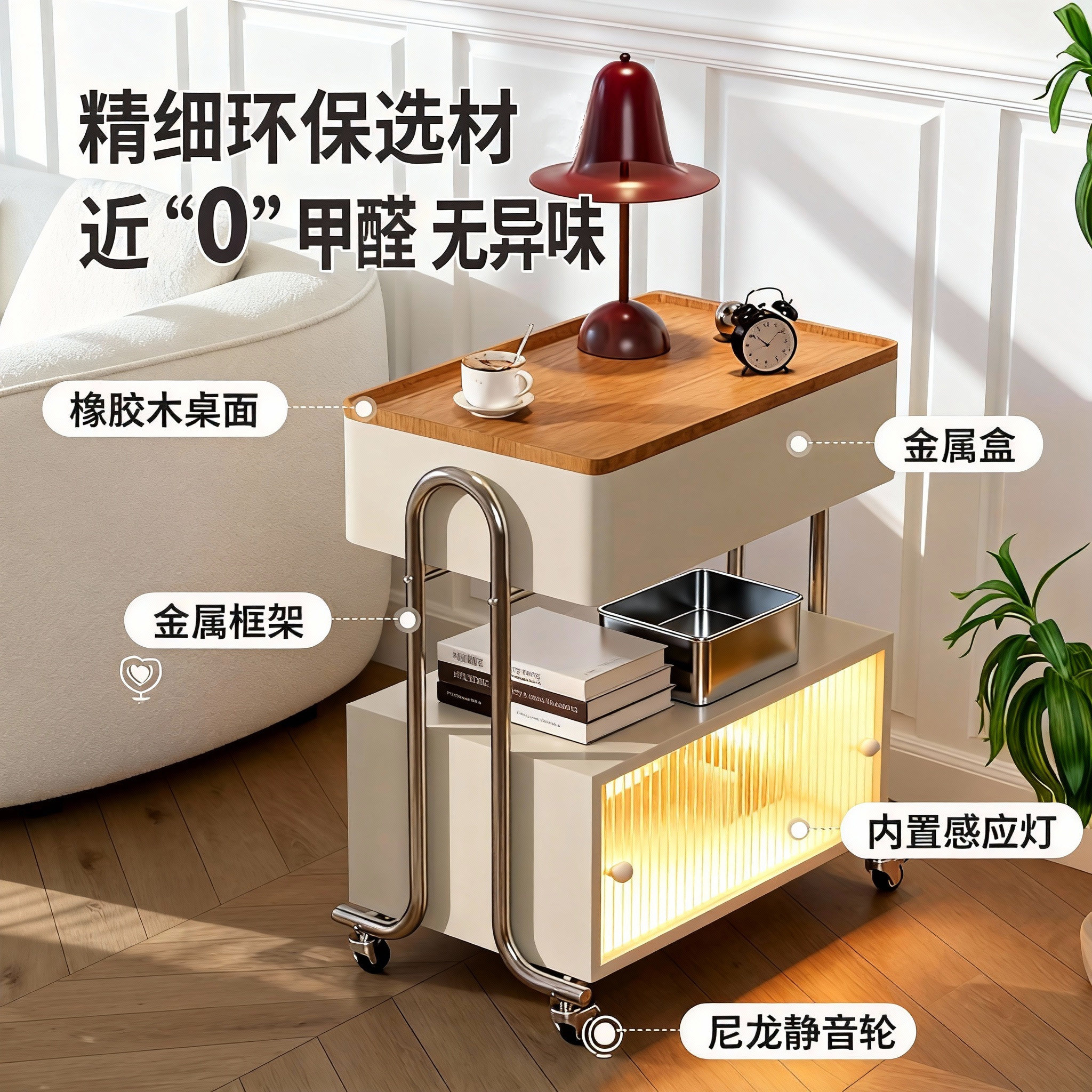 可移动沙发边几现代简约小推车茶几轻奢高级感中古床头边柜置物架