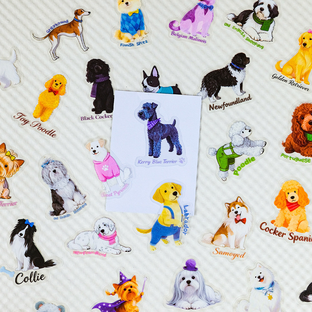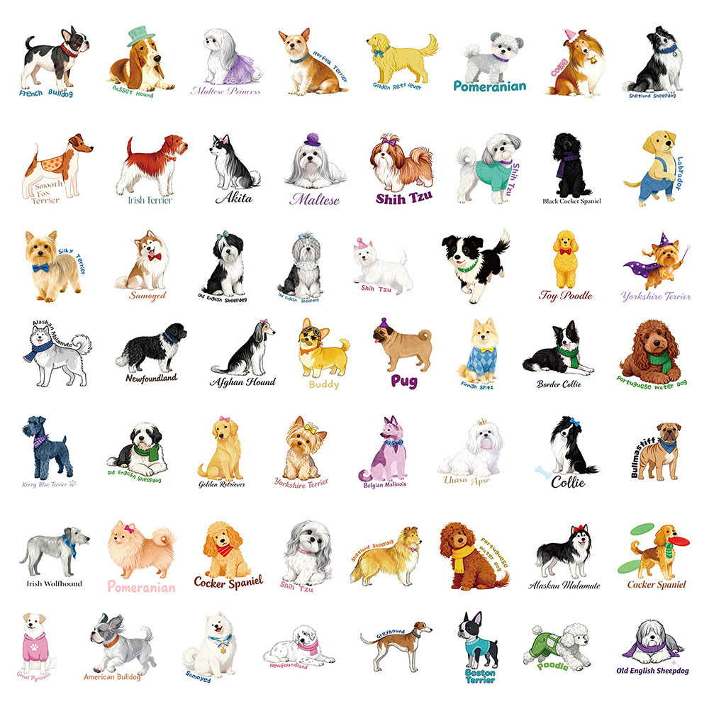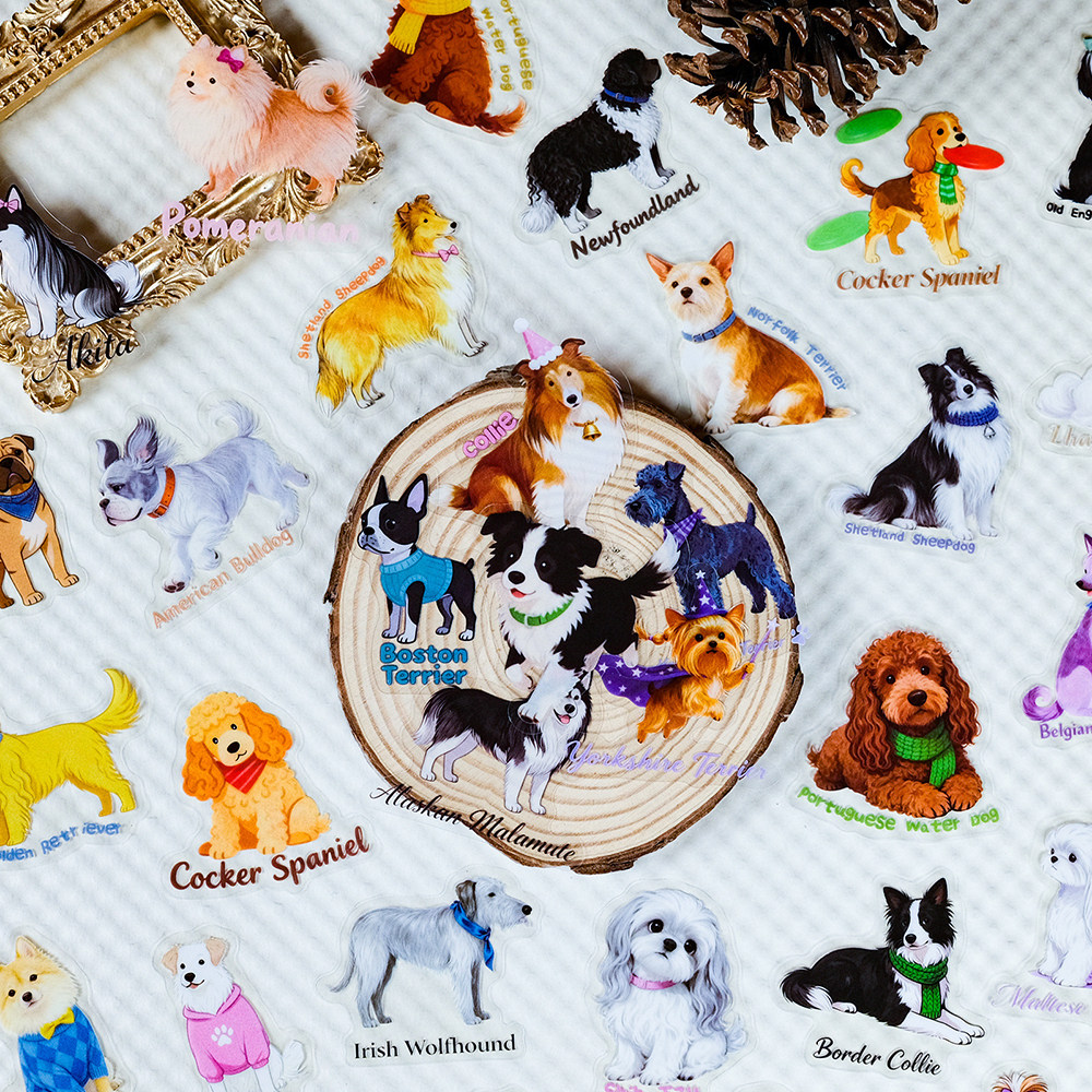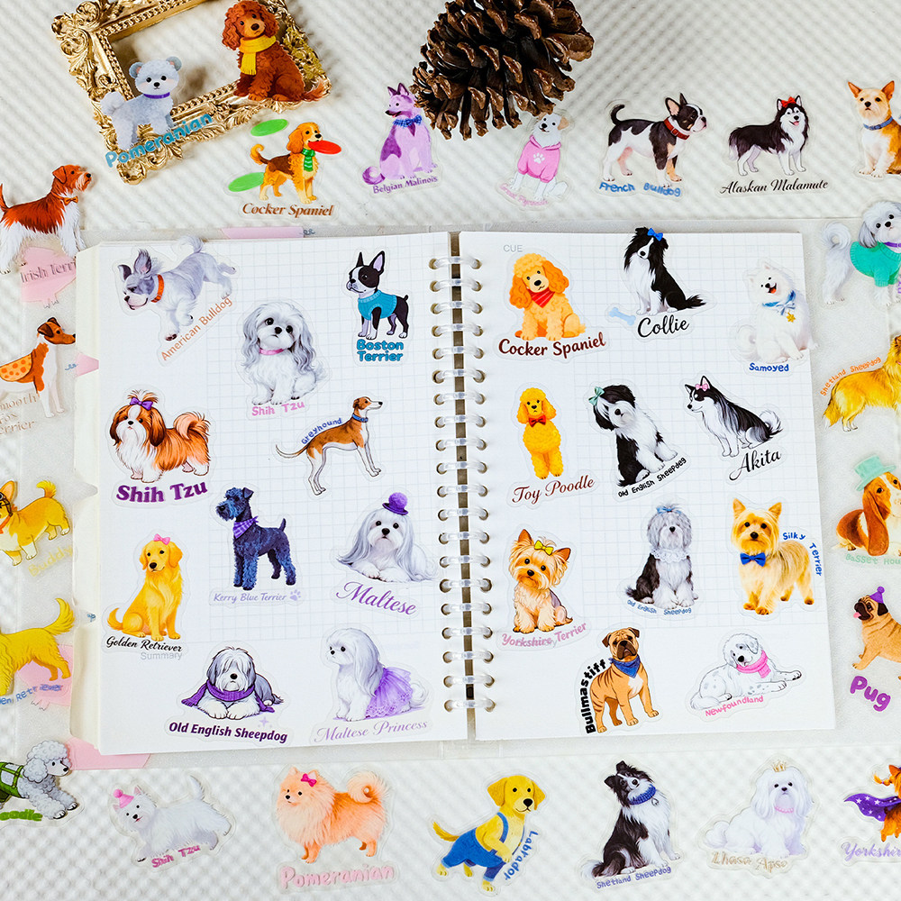 112张萌宠狗狗英文PET贴纸卡通可爱装饰笔记本桌面手账防水贴画