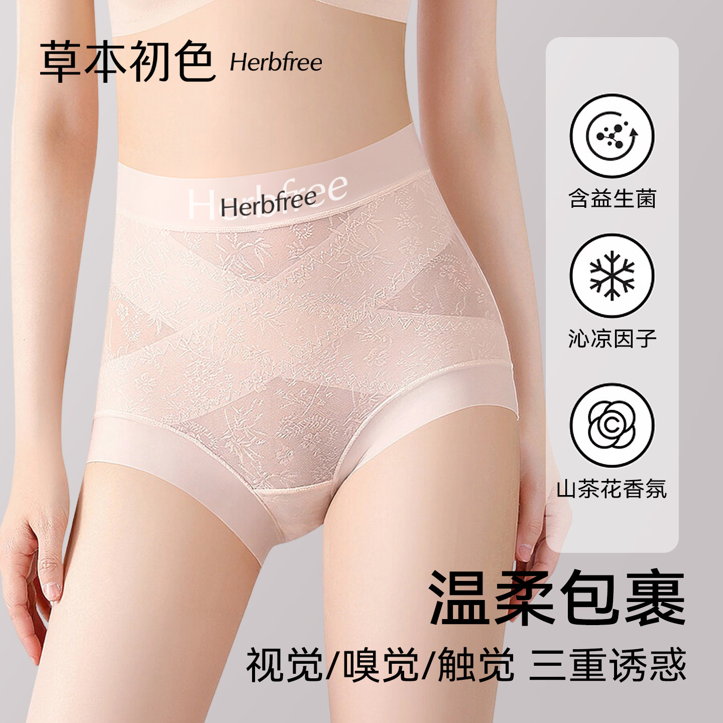 草本初色高腰内裤女士10A抗菌蚕丝档收腹显瘦平角聚乳酸无痕内裤