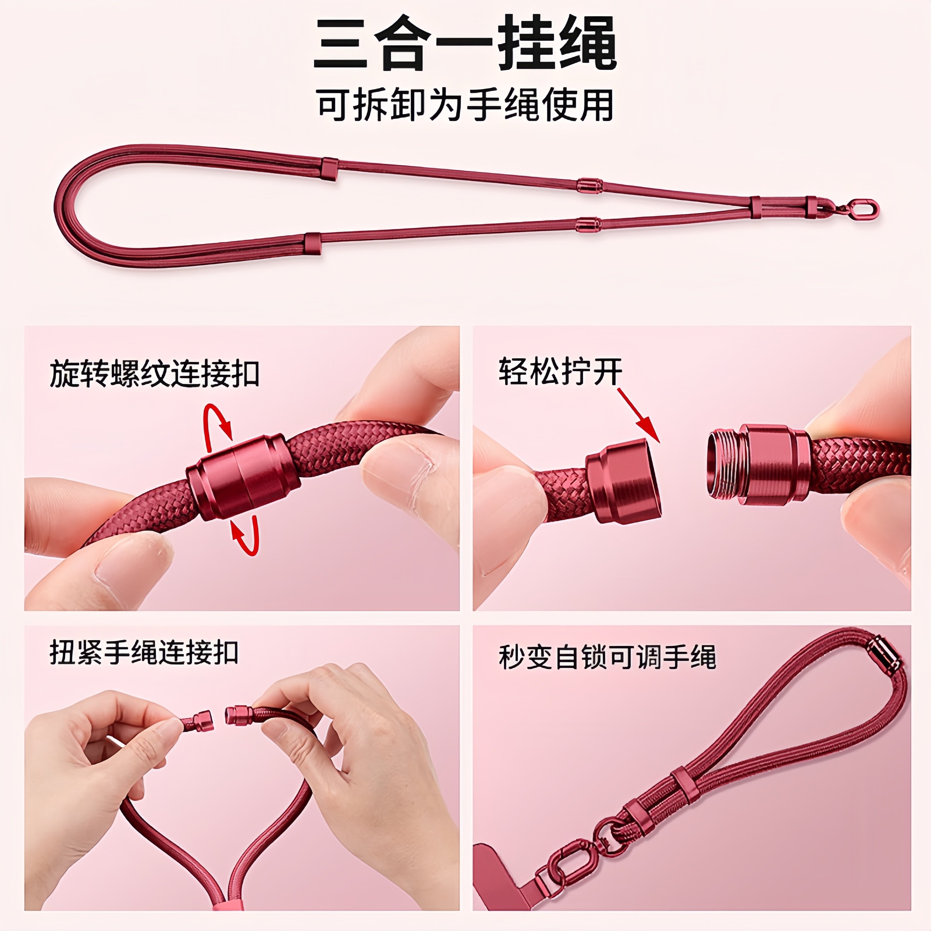 手机挂绳斜挎可背挂脖手腕款三合一可调节女高端挂链背带长防丢失防盗斜跨吊绳男电话壳夹片结实耐用挂件挂饰