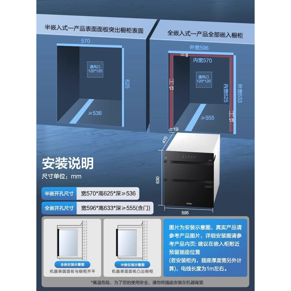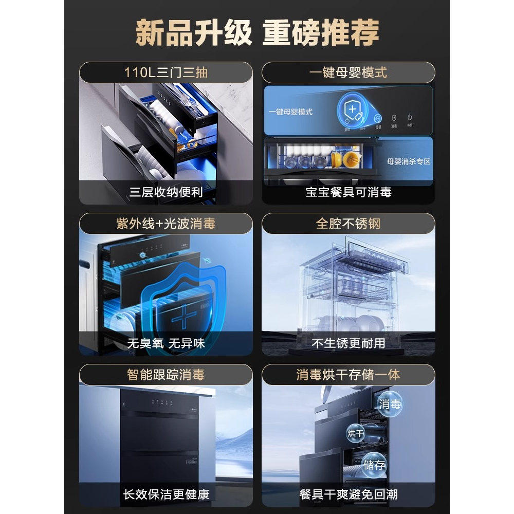 海尔EB031碗筷消毒柜家用小型嵌入式三层厨房消毒碗柜烘干一体机