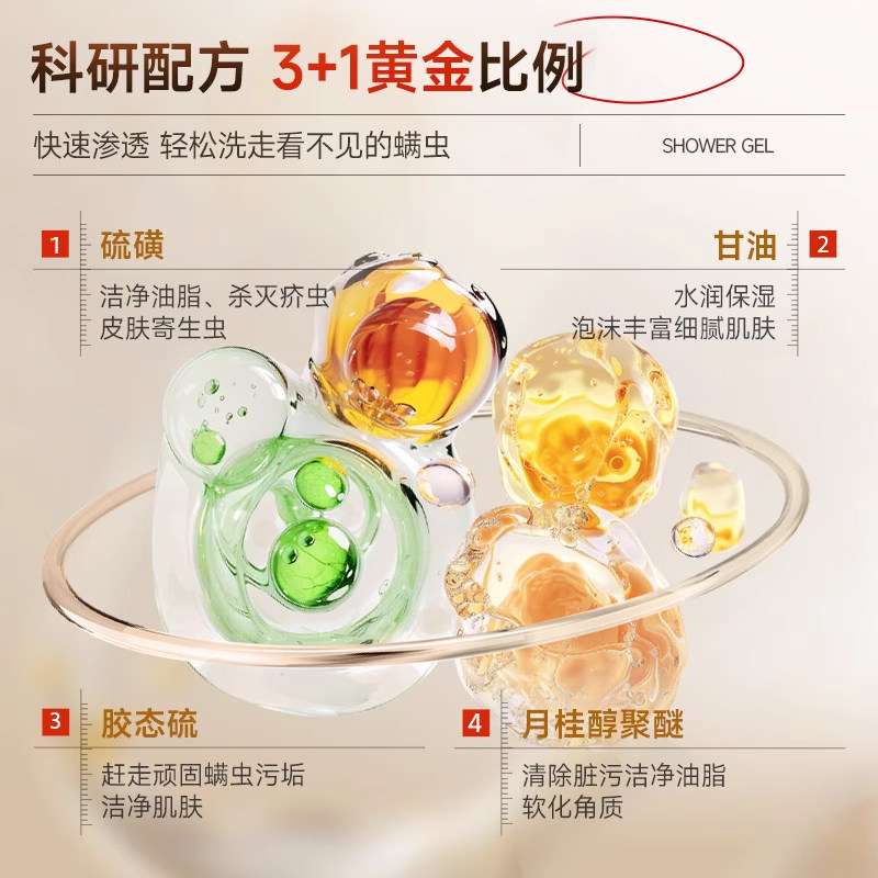 硫磺沐浴露除螨皮肤止痒后背祛痘持久留香官方旗舰正品水杨酸控油