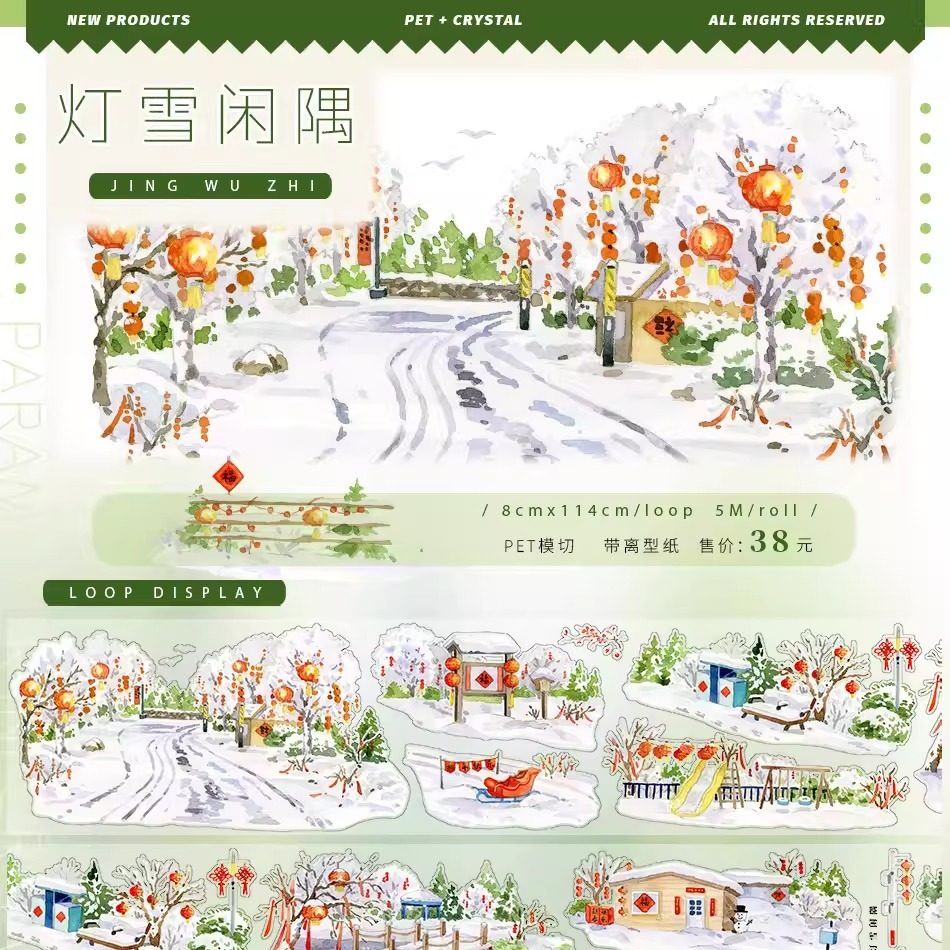 景物志#1月新品春冬日灯雪城镇乡居列轨现风街道造景胶带手账拼贴
