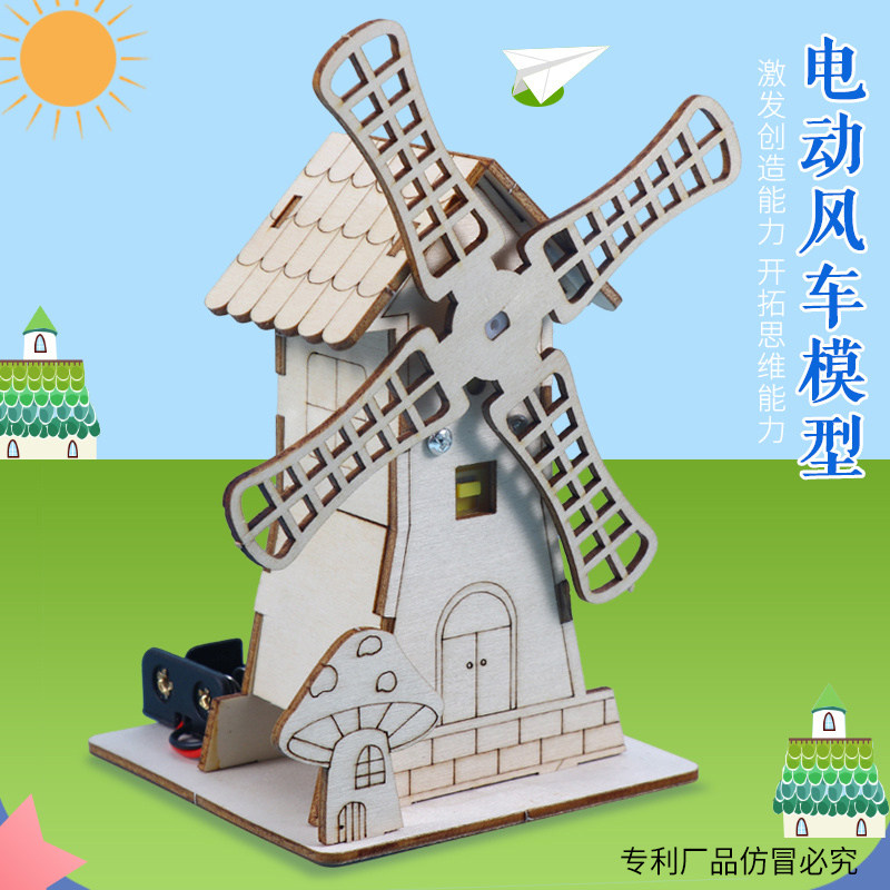 科学小实验发明DIY电动荷兰大风车科技小制作steam器材料包中学生