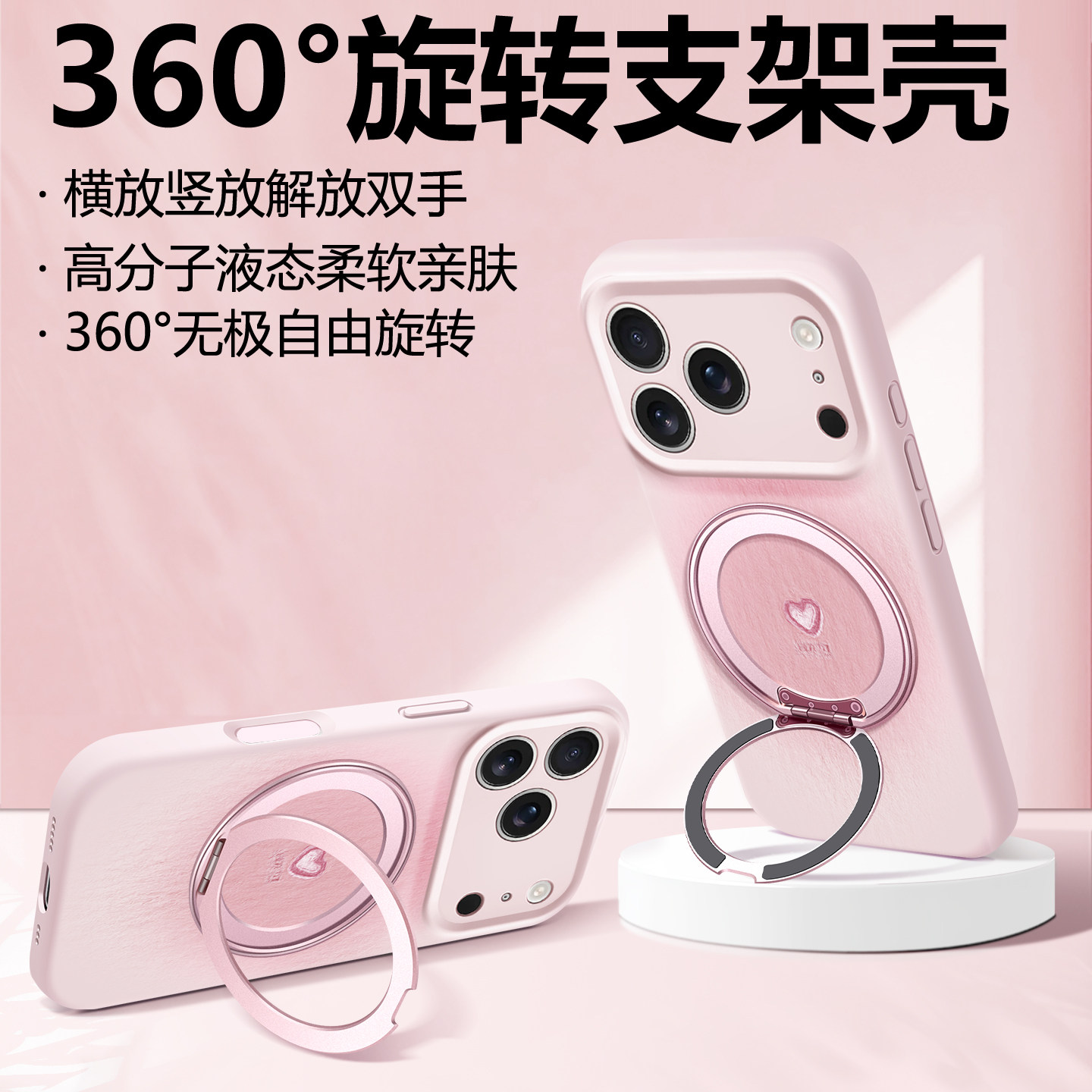 沃艾尼适用于苹果17promax手机壳高端硅胶iPhone16pro真液态15带支架14爱心日韩13挂绳保护套plus简约ins新款