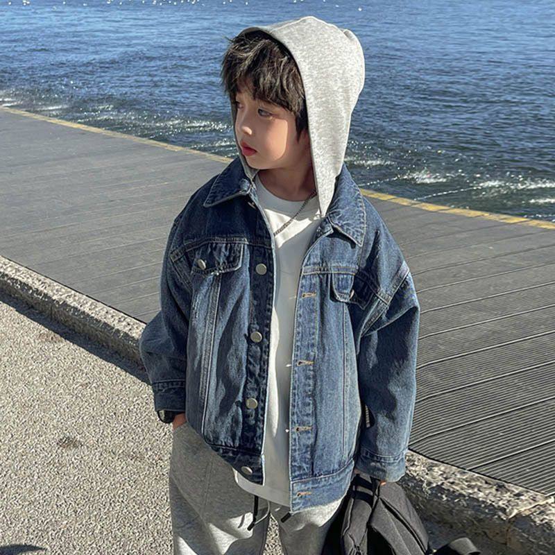 童装儿童连帽牛仔外套男童新款宽松上衣中大童春秋季洋气夹克百搭