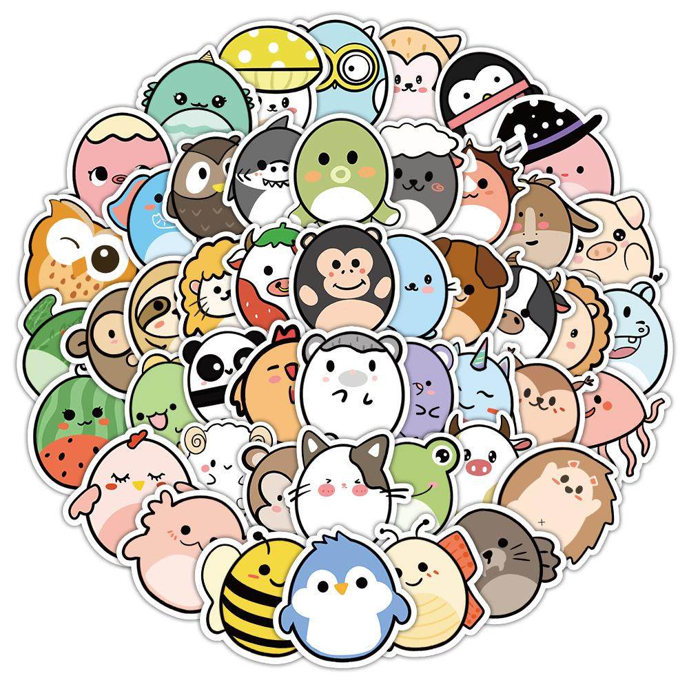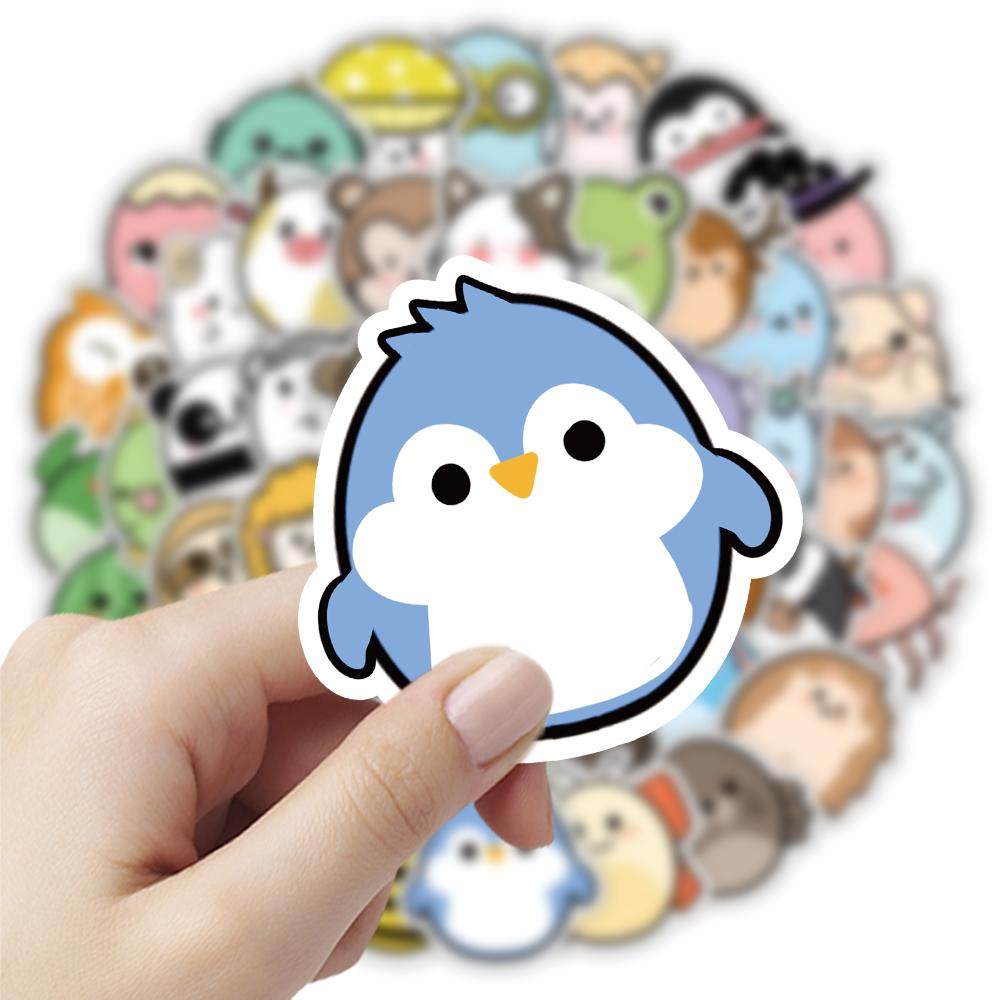 50张不倒翁圆圆小动物儿童可爱贴纸水杯头盔手机diy装饰防水贴画