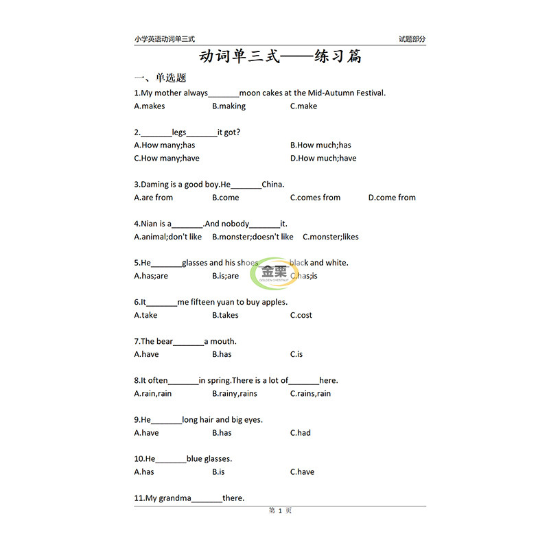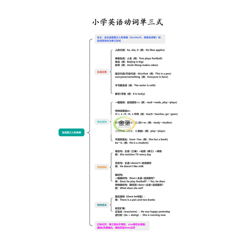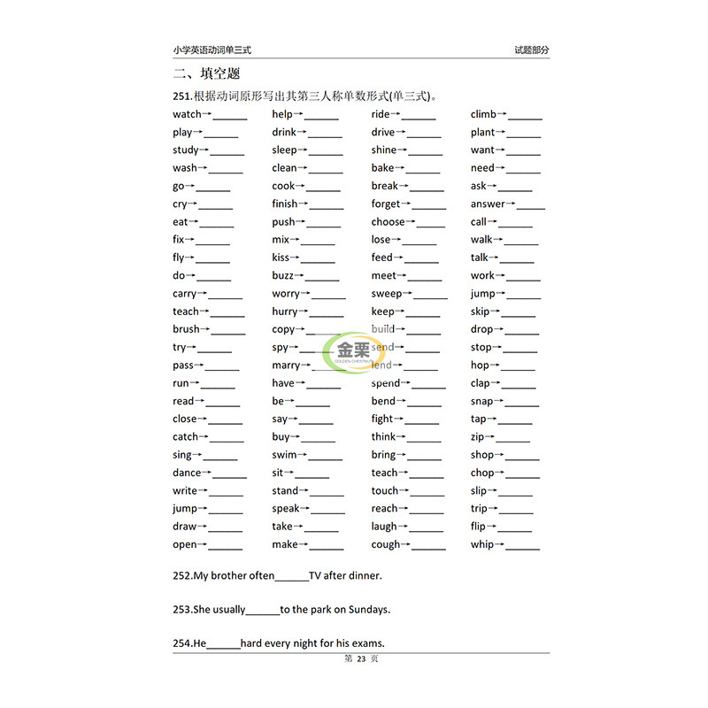 小学英语动词单三式专项练习册300题思维导图小升初含解析通用版