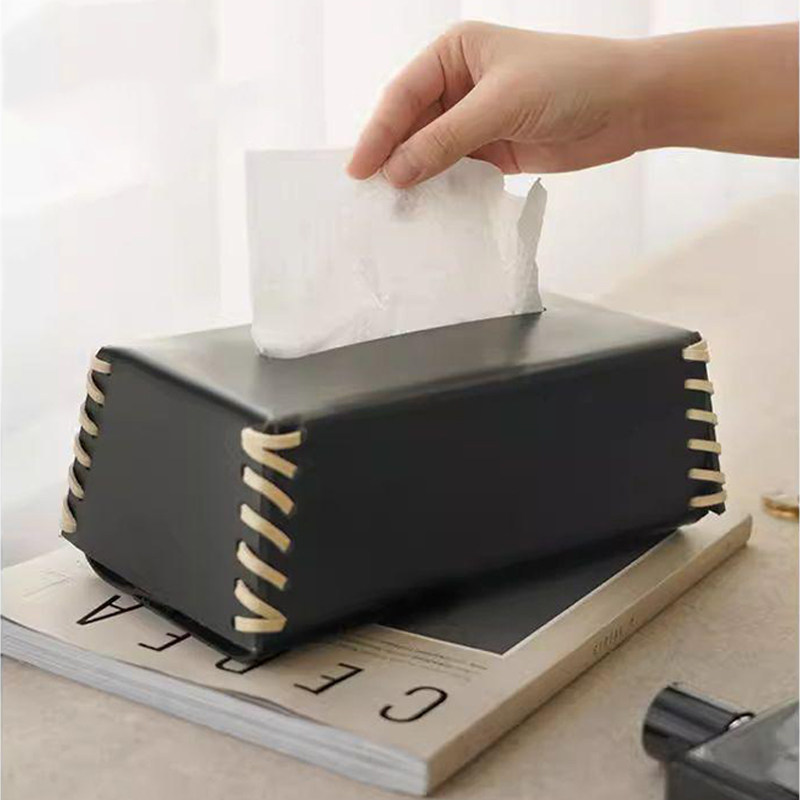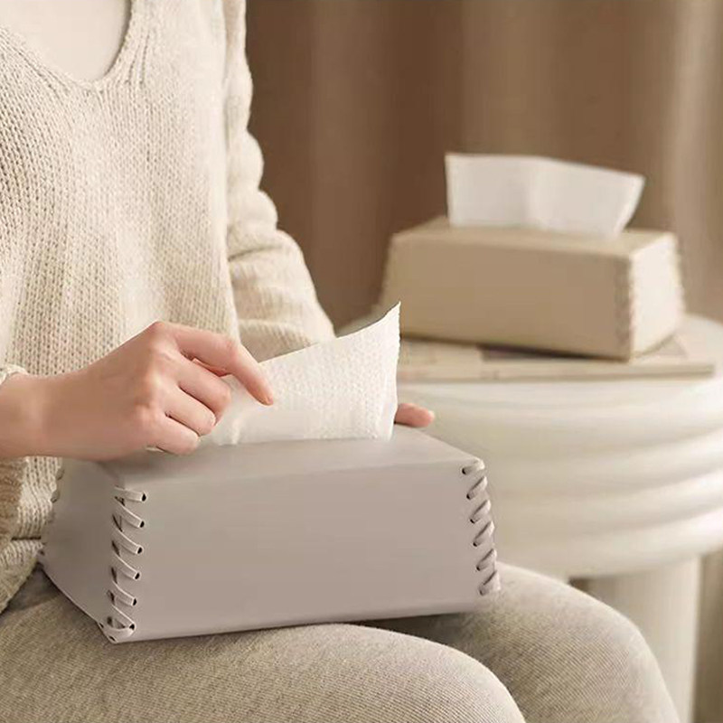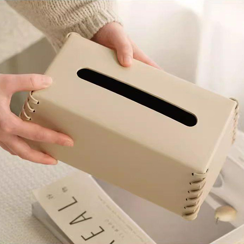 罗马编织纸巾盒高级感客厅轻奢桌面摆件抽纸盒高档皮革餐巾纸收纳