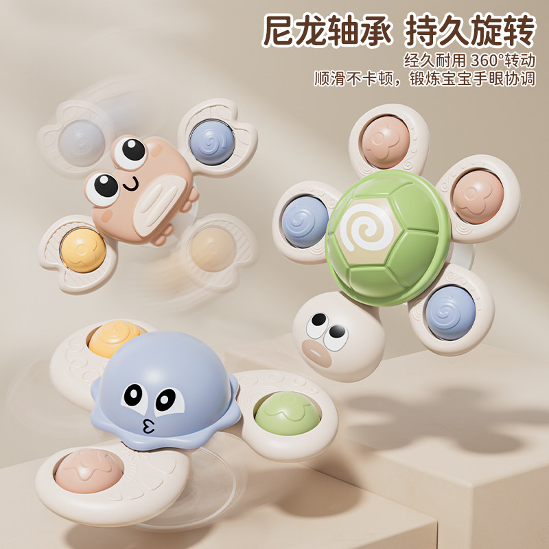 婴儿吸盘转转乐儿童宝宝卡通餐桌洗澡车载手指旋转玩具0-1岁6个月