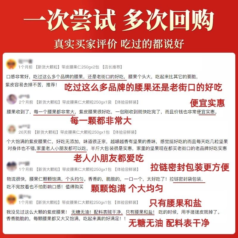 新货带皮大腰果仁500g原味盐焗紫皮腰果越南特产干果坚果孕妇零食