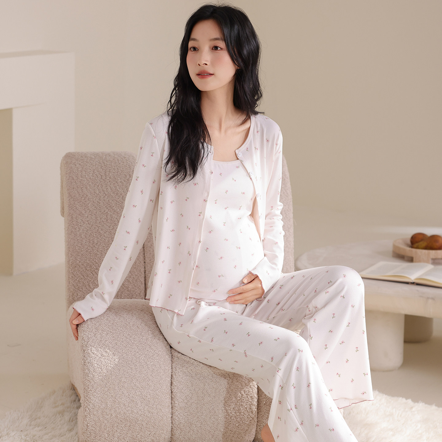 秋冬季空气棉月子服三件套春秋纯棉产后孕妇睡衣哺乳产妇12月份11