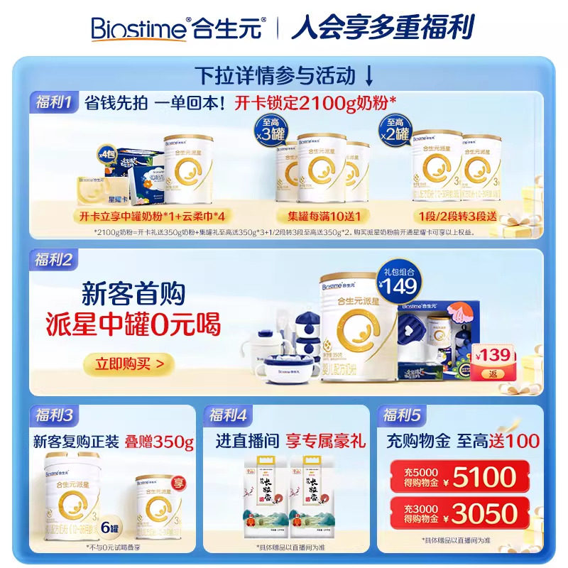 【官方正品】合生元派星2段婴幼儿牛奶粉婴儿二段奶粉宝宝800g