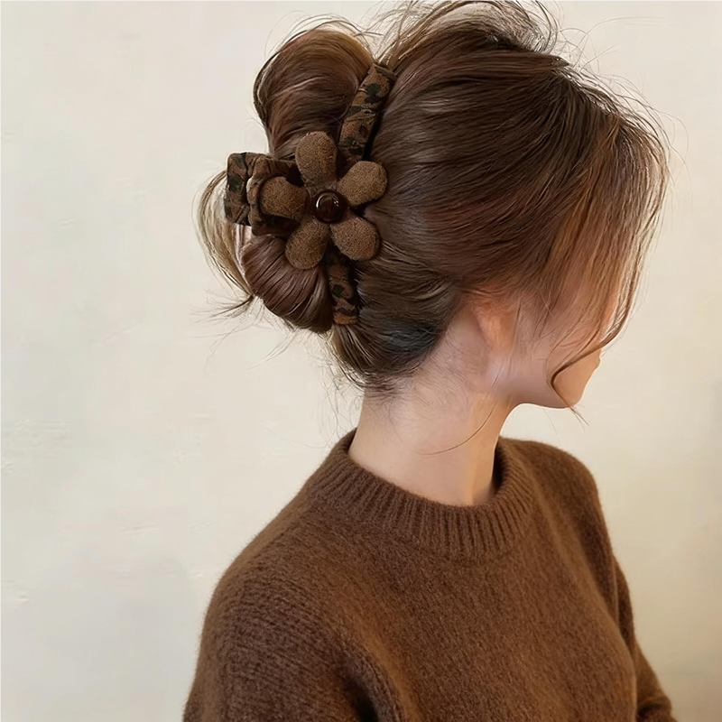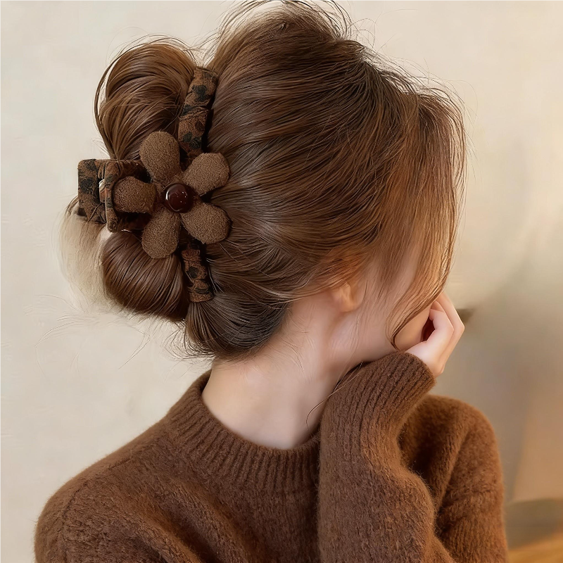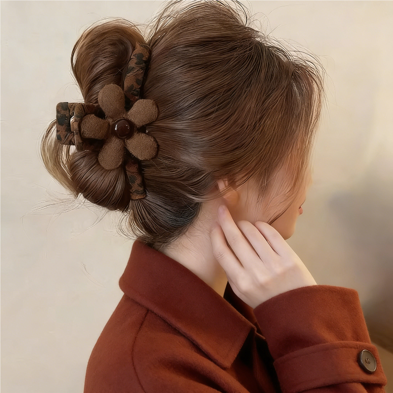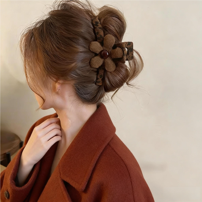 花朵蝴蝶结豹纹发夹女高级感2026新款后脑勺盘发抓夹鲨鱼夹发量大