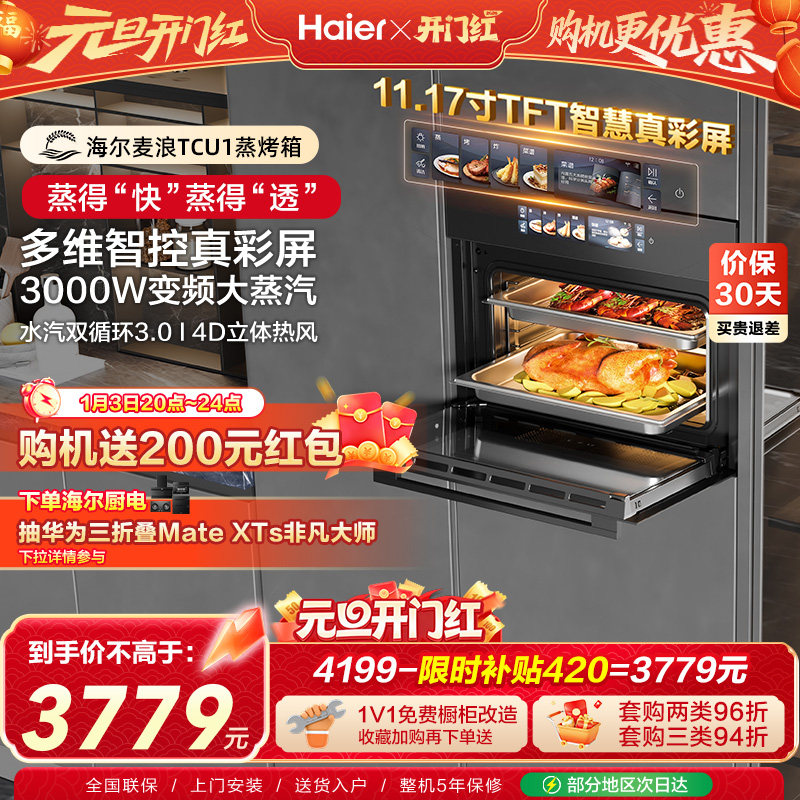 海尔麦浪蒸烤箱瞬蒸C50蒸烤一体机嵌入式家用蒸箱【3000W大蒸汽】