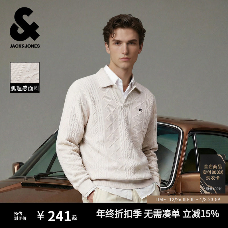 【POLO衬衫领卫衣】杰克琼斯男装秋季新款肌理面料外套情侣刺绣