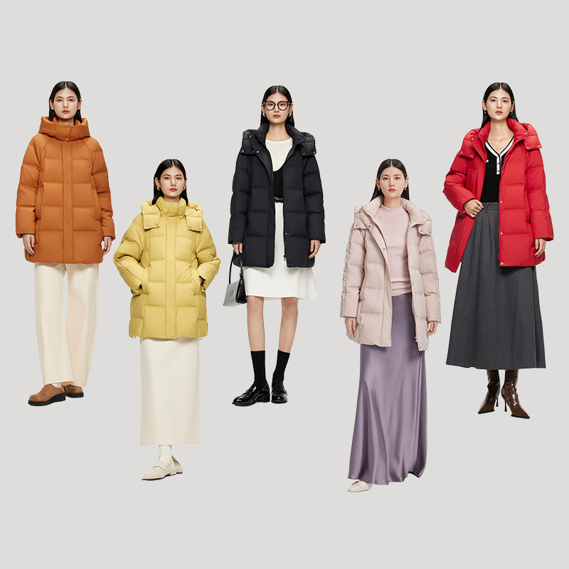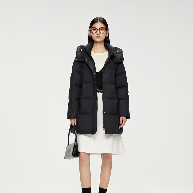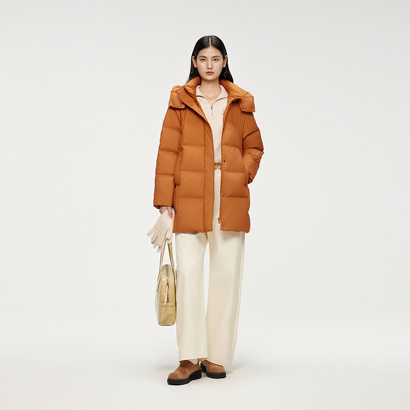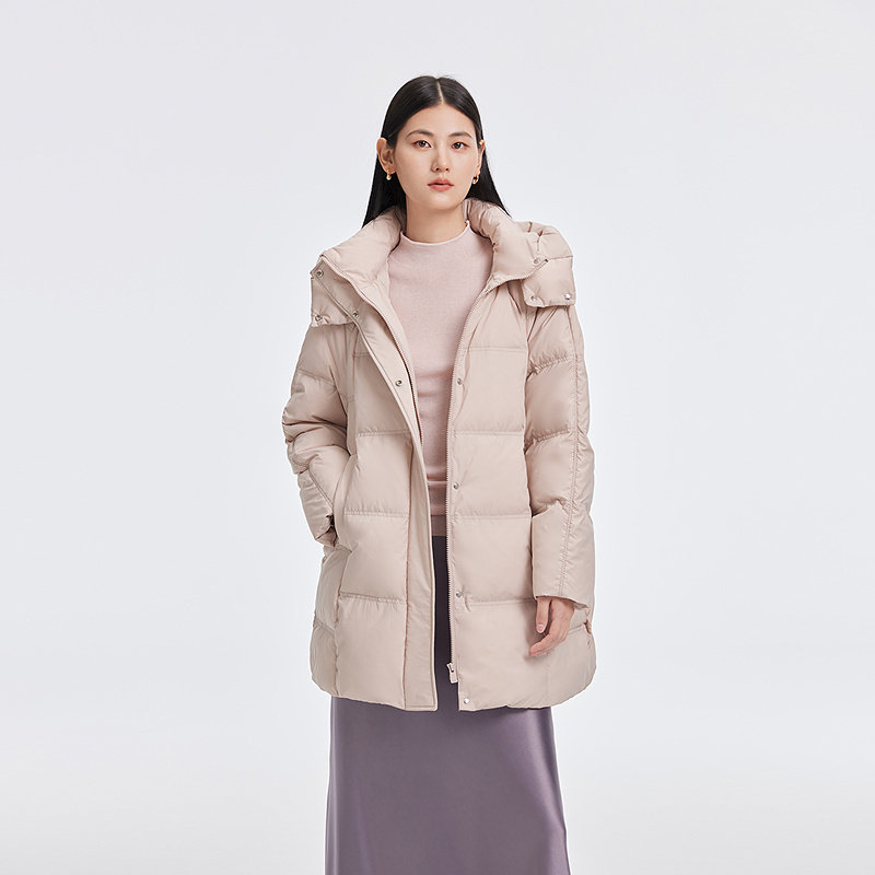 艾莱依横格简约羽绒服商场同款时尚简约大口袋连帽中长款外套女士