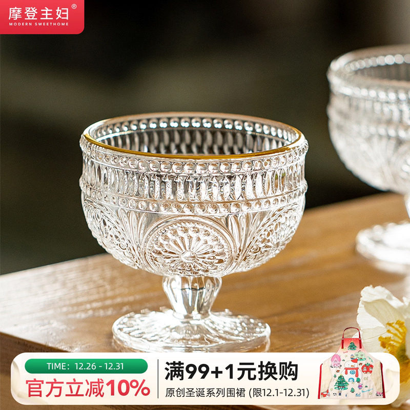 摩登主妇冰淇淋碗甜品杯牛奶杯玻璃杯家用酸奶杯早餐杯子冰激凌杯