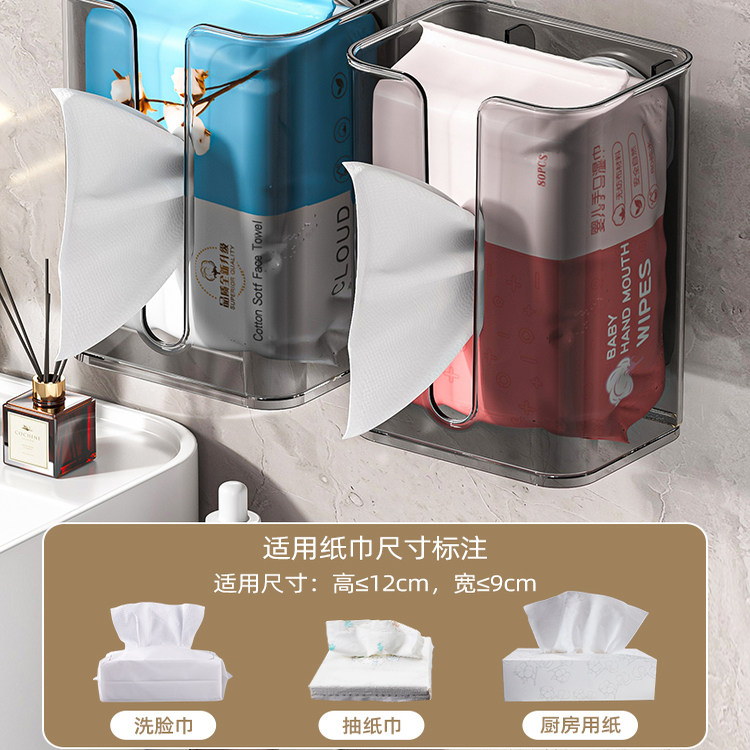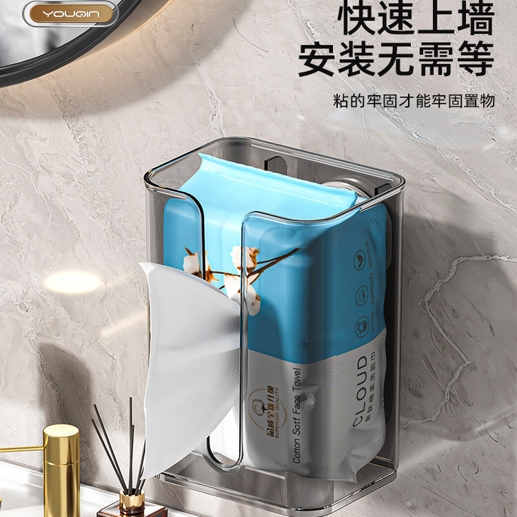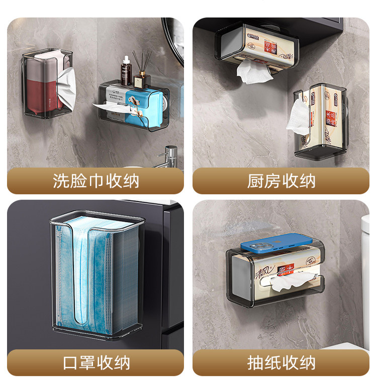 卫生间抽纸盒洗脸巾收纳盒吸盘纸巾盒厕所纸置物架壁挂式浴室防水