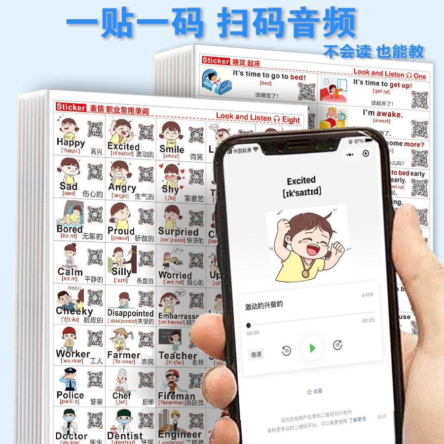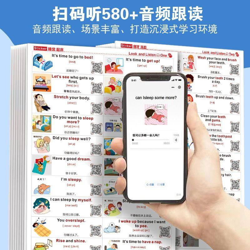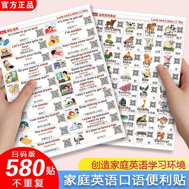 580贴少儿英语口语贴家庭情景英语日常场景贴纸单词儿童防水贴