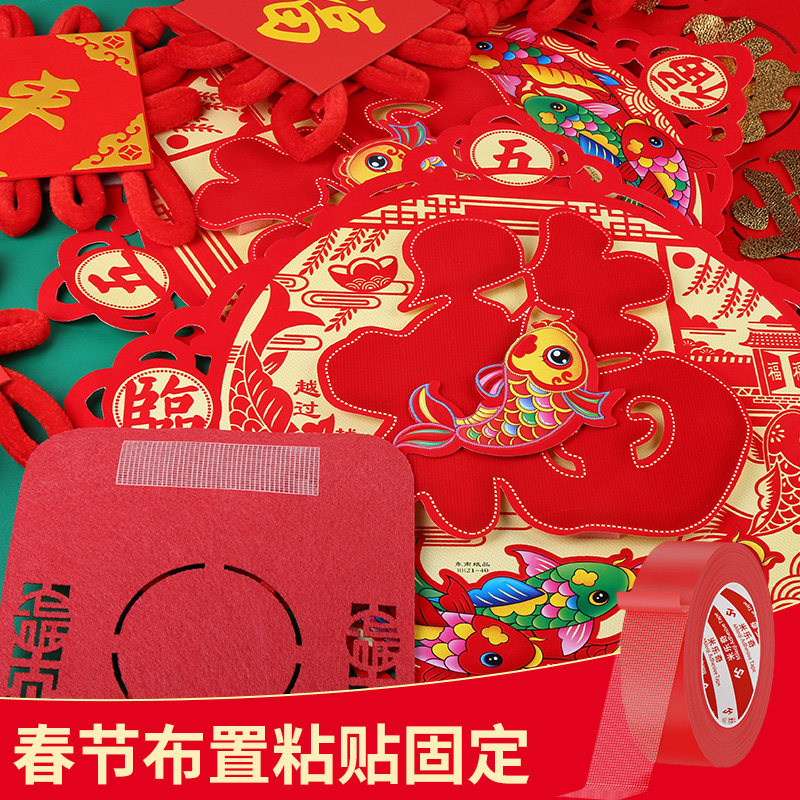 贴春联对联双面胶带撕下不留痕迹红色网格布基双面无痕胶布婚庆婚房装饰气球喜字福字年画高粘度强力固定墙面