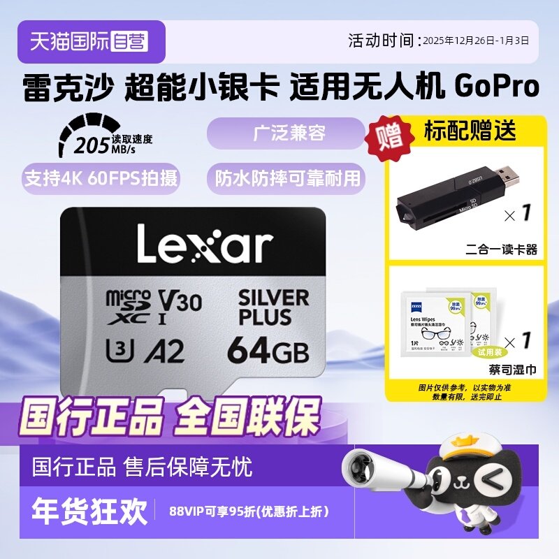 【自营】雷克沙Lexar存储卡128g大疆无人机内存卡tf运动相机gopro