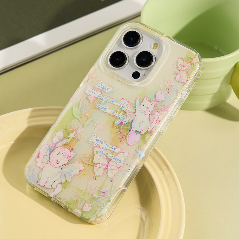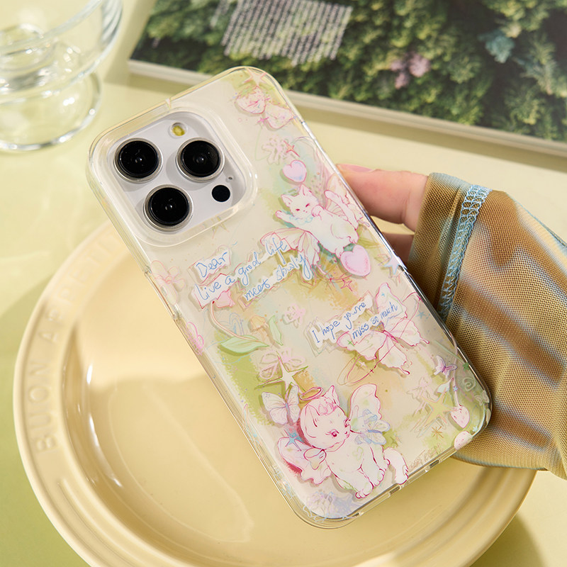 壳试验原创花园小猫双层印花适用iPhone17promax手机壳少女心苹果17pro可爱卡通16promax日韩15promax新款16