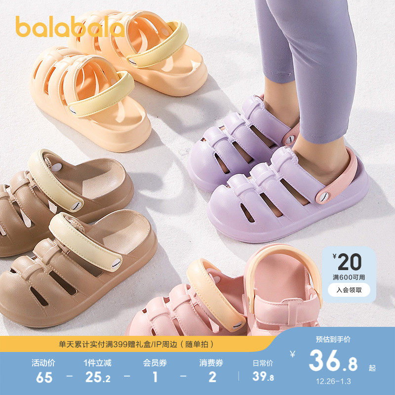 巴拉巴拉童鞋儿童洞洞鞋女童凉拖鞋2025夏季新款沙滩包头鞋一脚蹬
