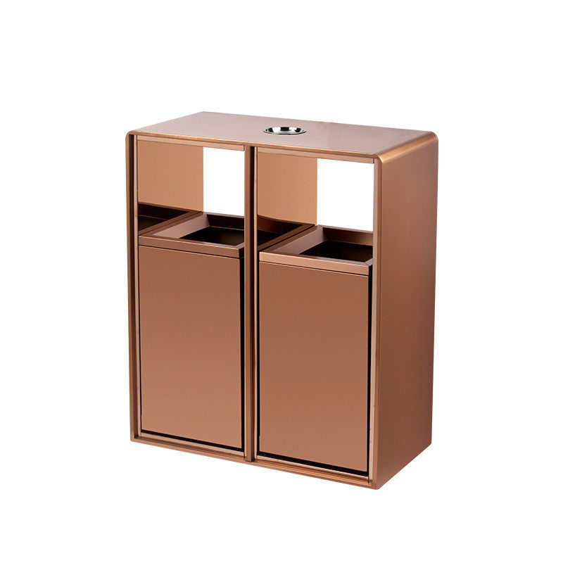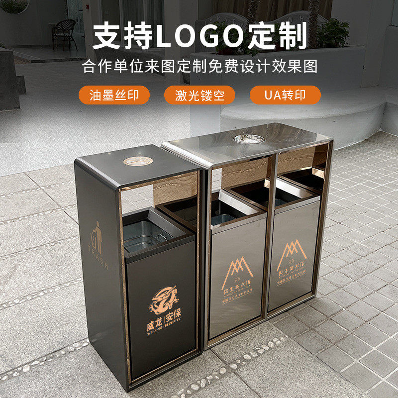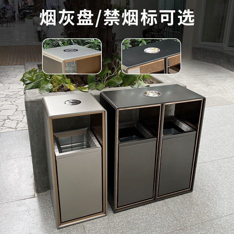 不锈钢垃圾桶带烟灰缸户外分类垃圾箱商场大厅立式圆角收纳桶