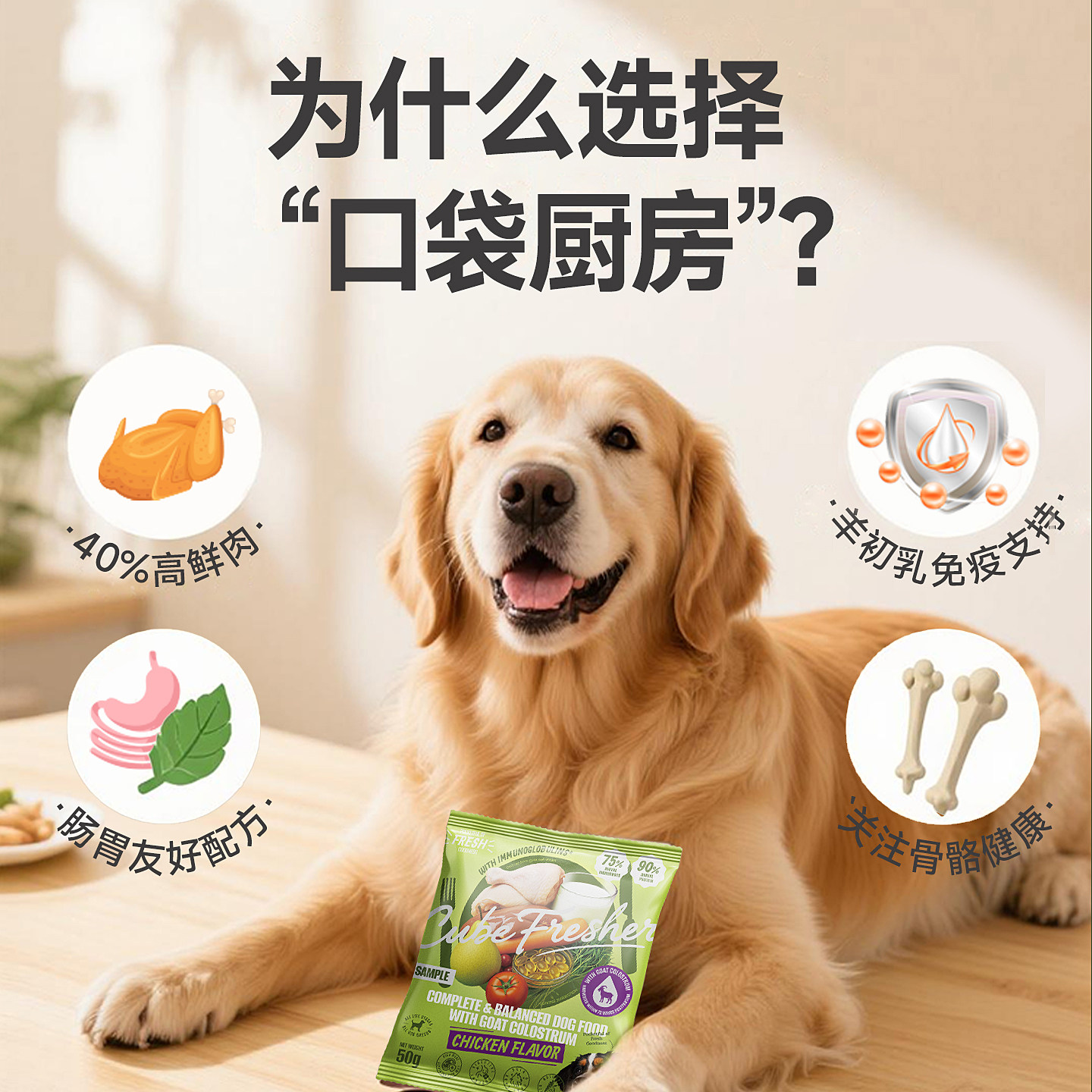 口袋厨房试吃狗粮小型犬羊初乳鲜鸡肉狗粮幼犬粮鸭肉梨狗粮大型犬
