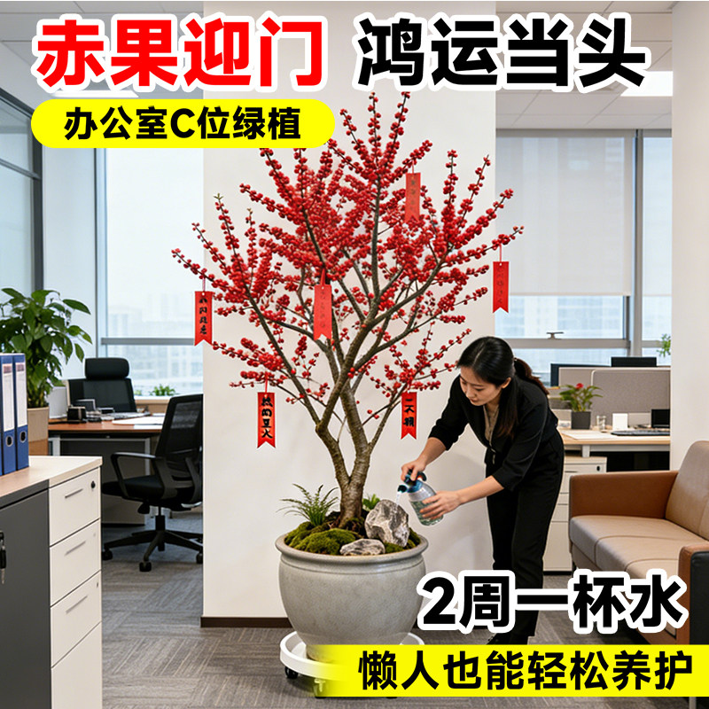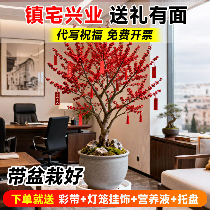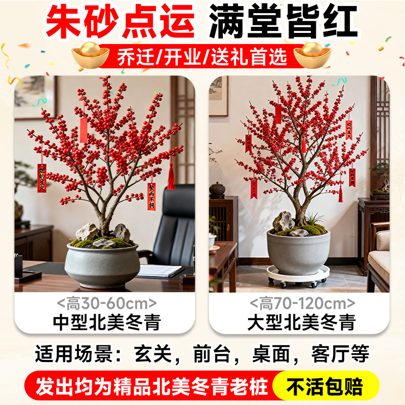 大型老桩进口北美冬青红果真花带果盆栽室内花卉绿植大盆过年新年