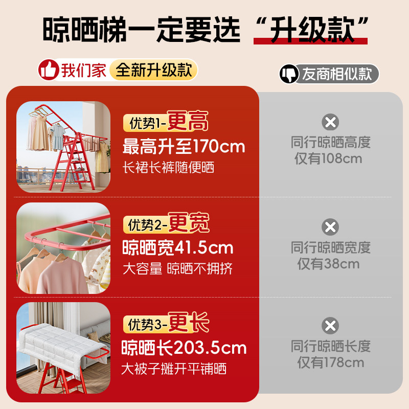 折叠晾衣架阳台家用梯子晒衣架两用室内落地两用多功能晒被子神器