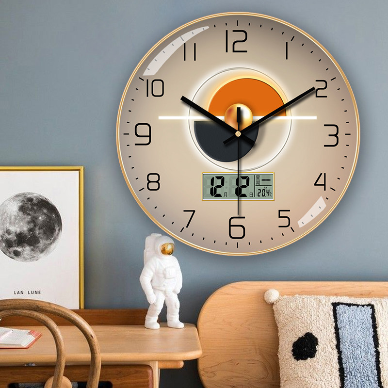 TIMESS钟表挂钟客厅静音钟挂墙日历家用时尚2025新款时钟石英电子