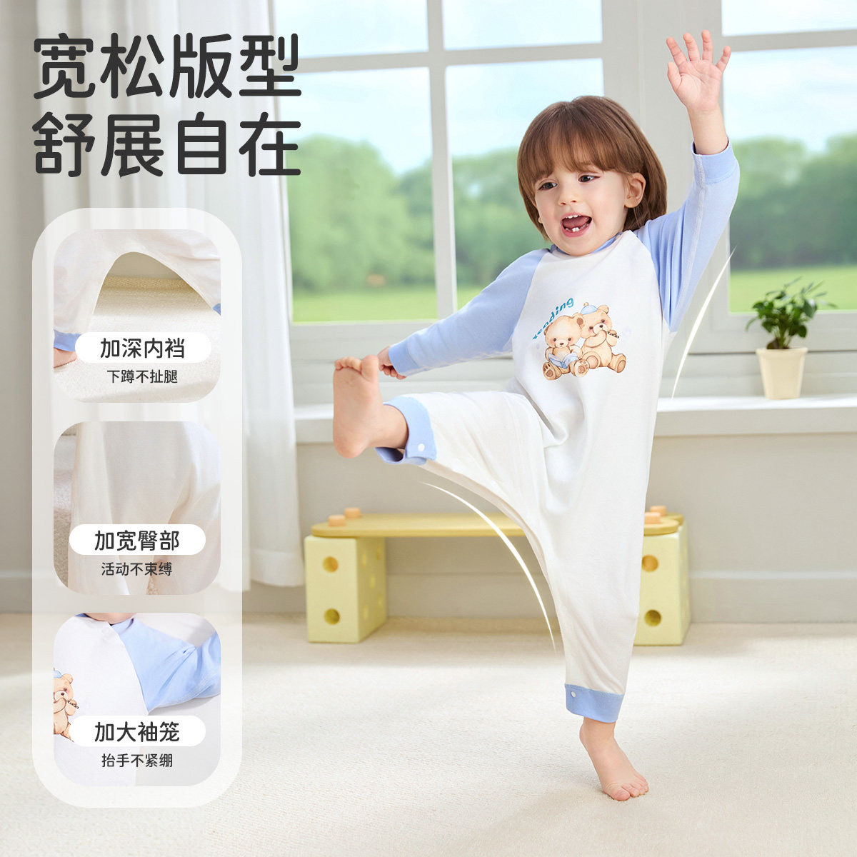 【柔柔衣】婧麒宝宝连体睡衣春秋纯棉居家服男女婴儿睡衣长袖睡袋