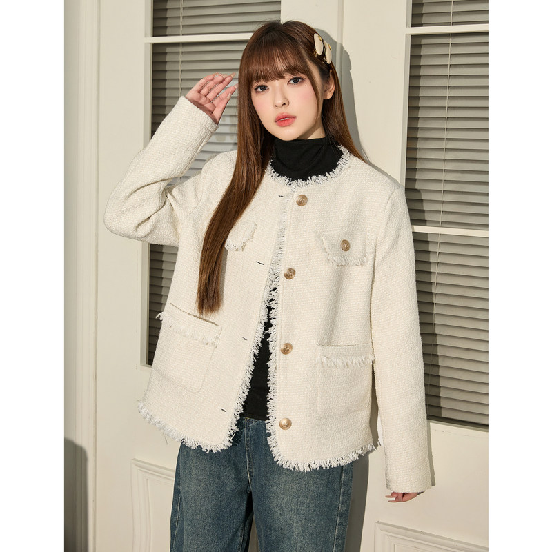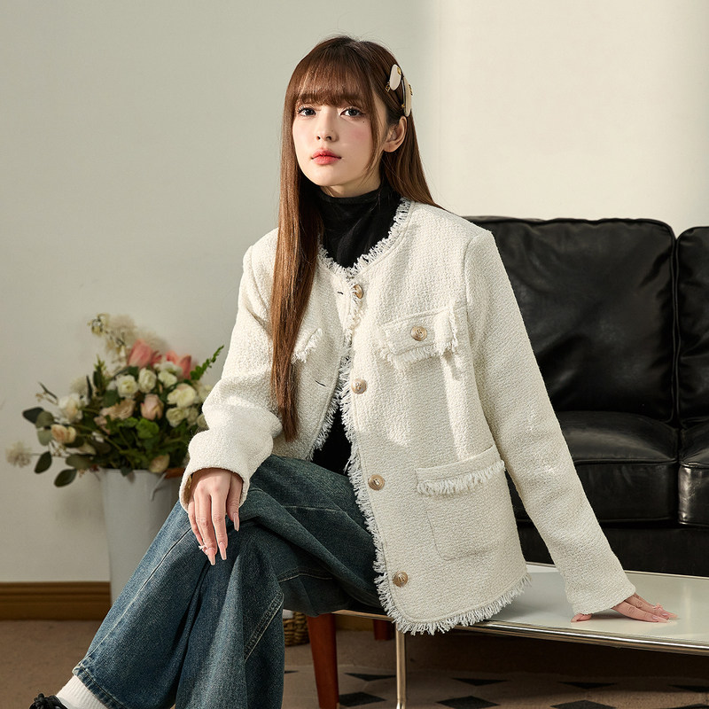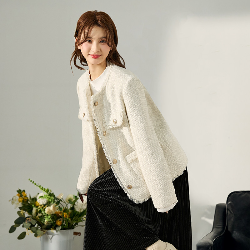 唐狮小香风法式白色外套女春秋新款小个子气质上衣黑色