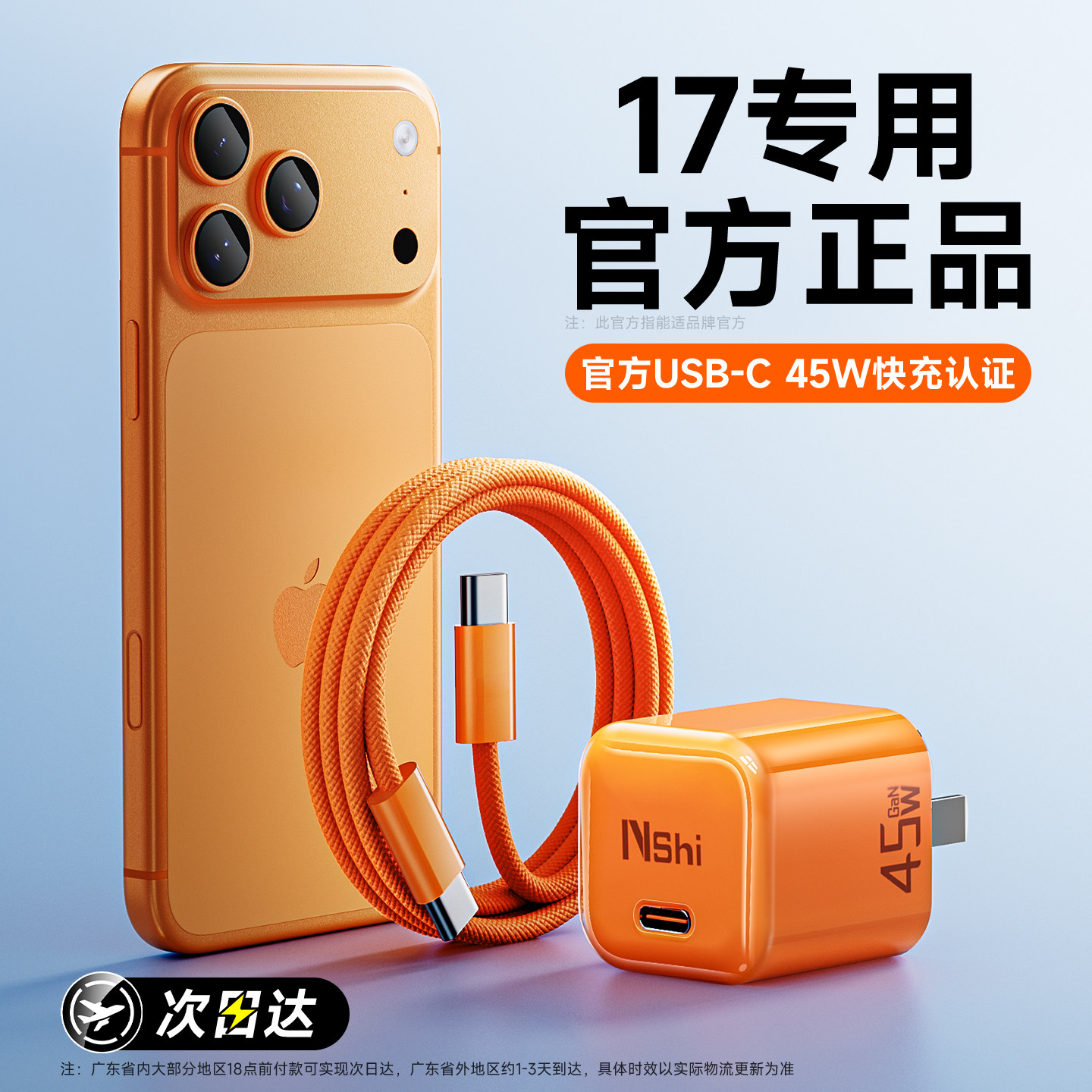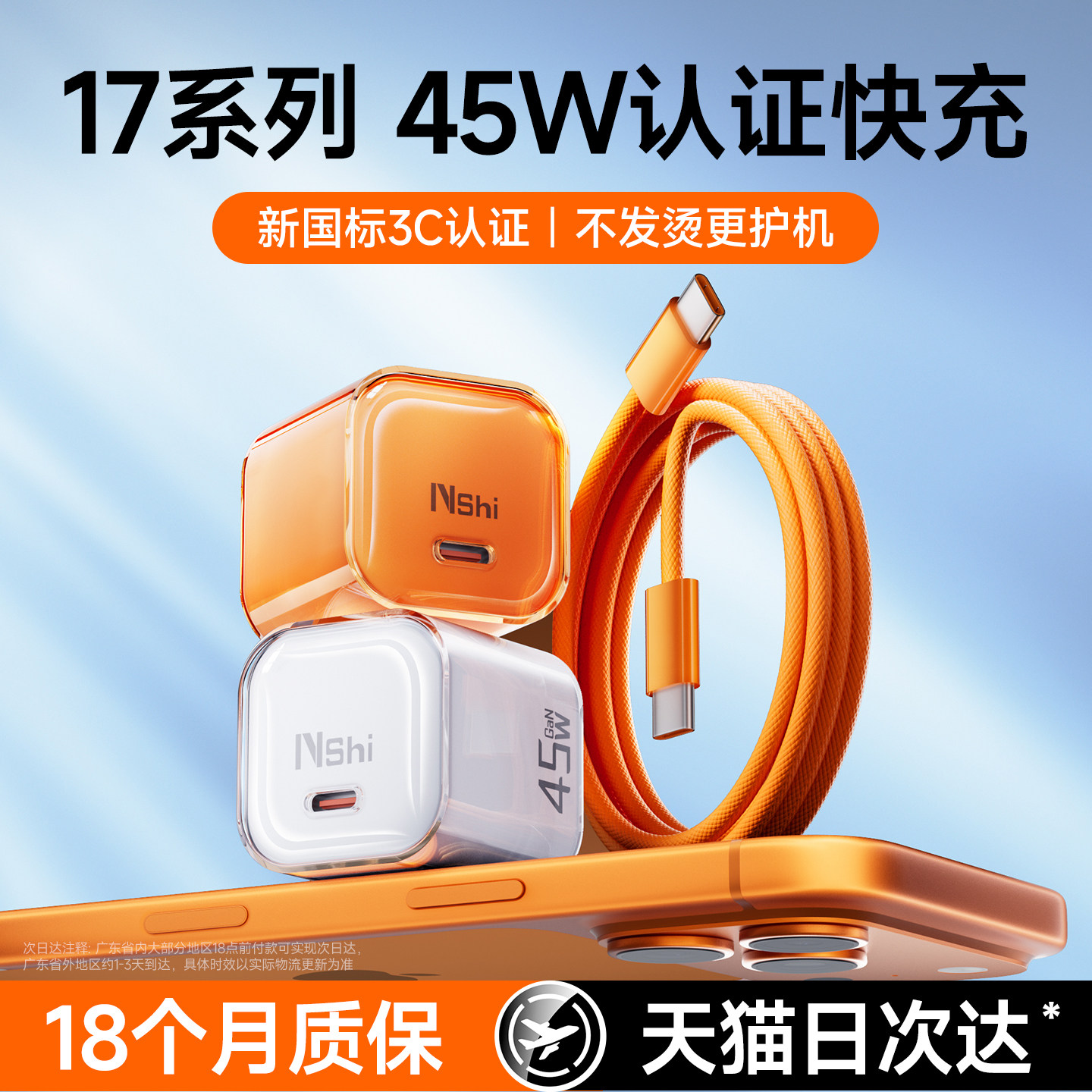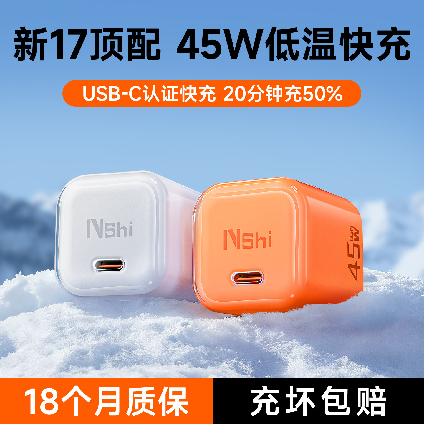 【3c认证】能适45W充电器适用苹果17iPhone16小冰块PD氮化镓低温护机冰感充电器苹果17pro充电线max充电头15