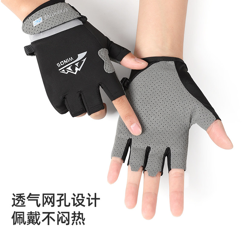 防晒手套男夏季户外骑行钓鱼防滑手套露指女触屏二指薄透气耐磨H