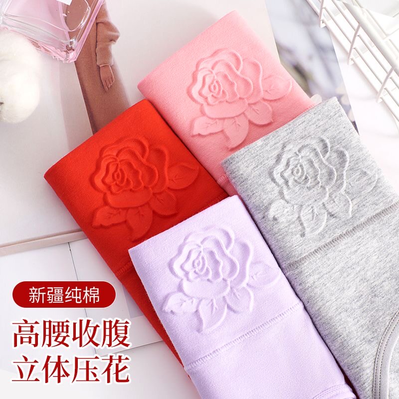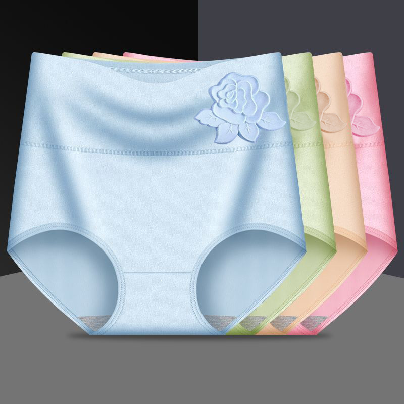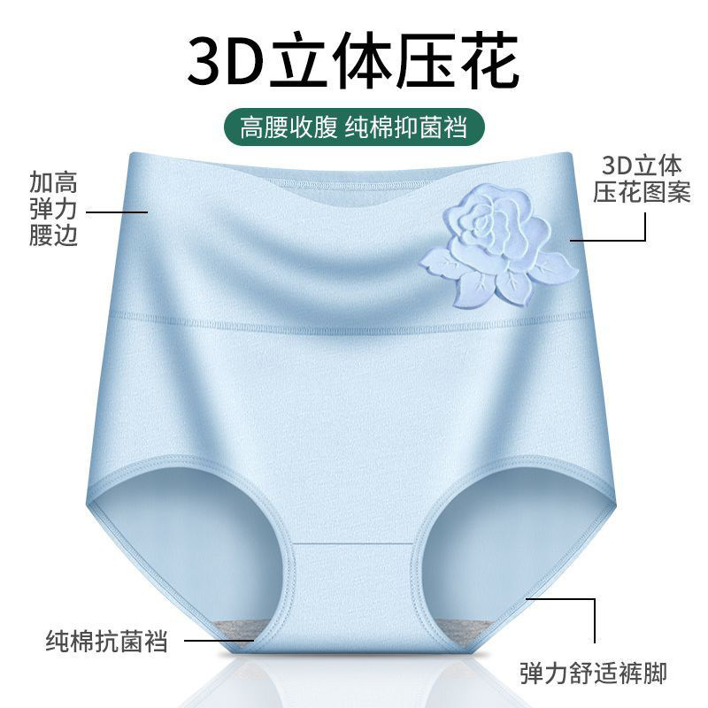 女士内裤纯棉大码透气高腰收腹抗菌档中年胖mm短棉质平角中腰抑菌