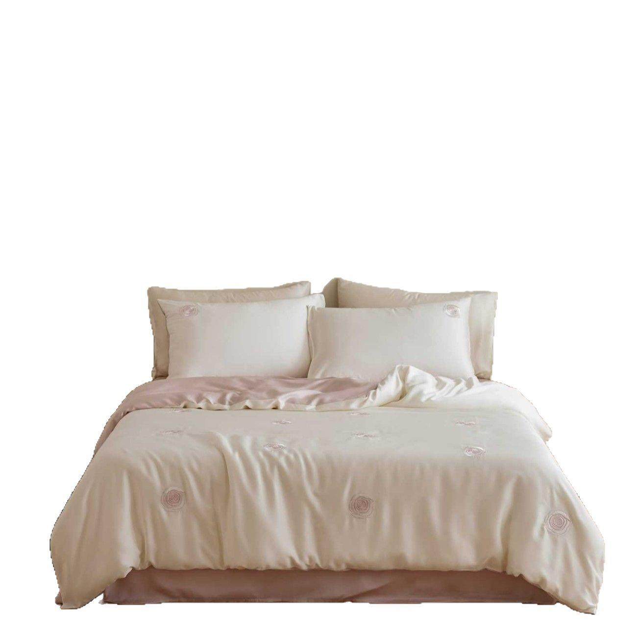 夏季兰精天丝四件套轻奢丝滑裸睡山茶花刺绣被套床单凉感床品
