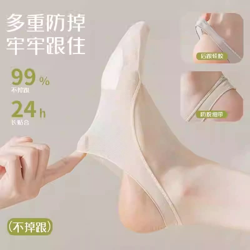 半掌袜船袜女夏季棉底防滑不掉跟袜套冰丝薄款吊带袜纯棉肤色单鞋