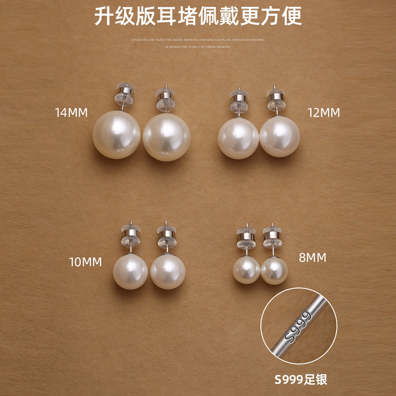 fever同款珍珠耳钉999纯银施家耳环2025新款爆款高级轻奢正圆耳饰