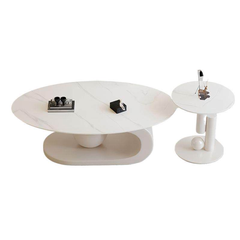 椭圆形岩板茶几简约小户型现代家用客厅茶桌组合意式轻奢子母茶几