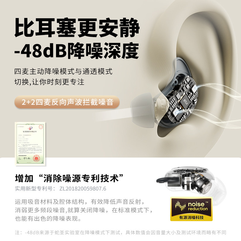 4麦ANC主动降噪,侧睡不压耳防滑落硅胶弧边