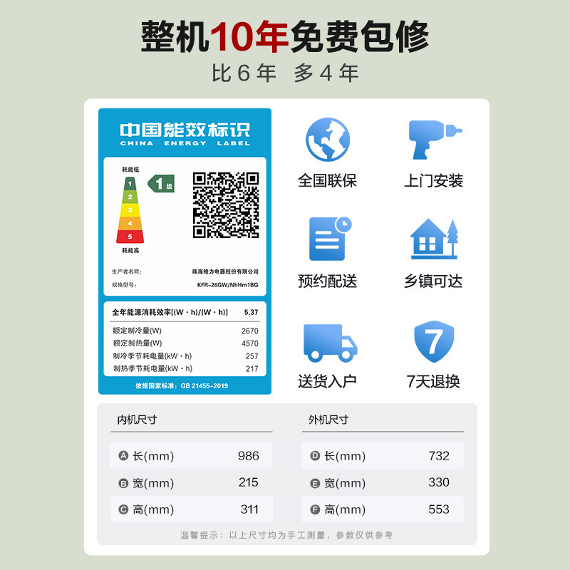 海尔净畅1.5匹空调家用挂式变频一级能效挂机冷暖两用卧室小型GCA