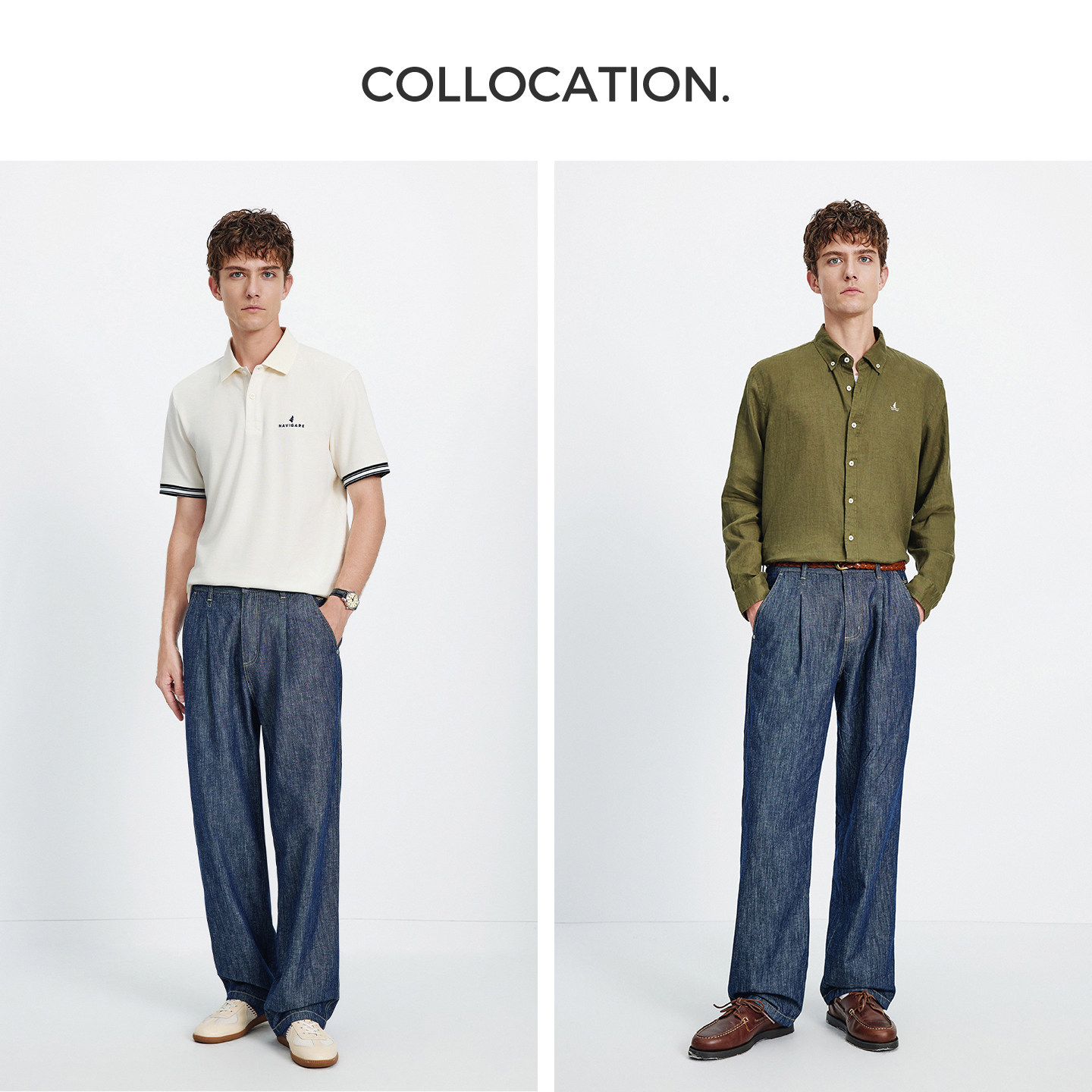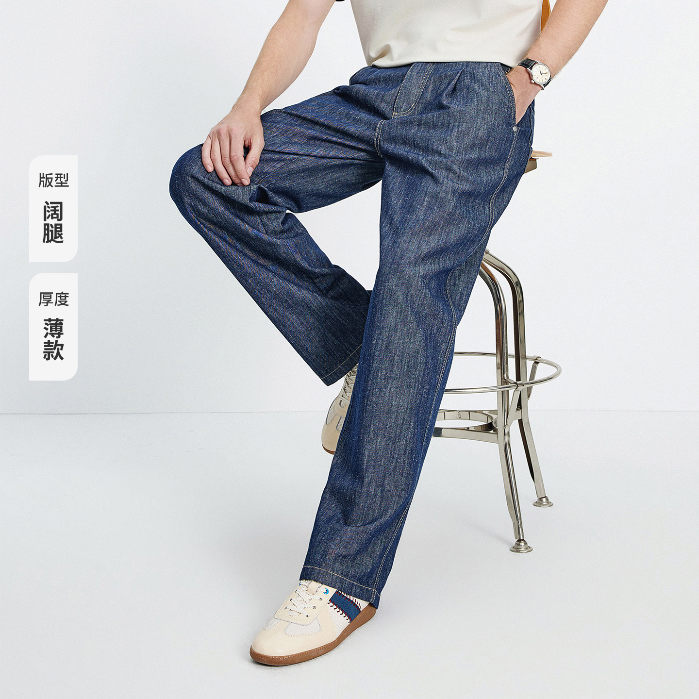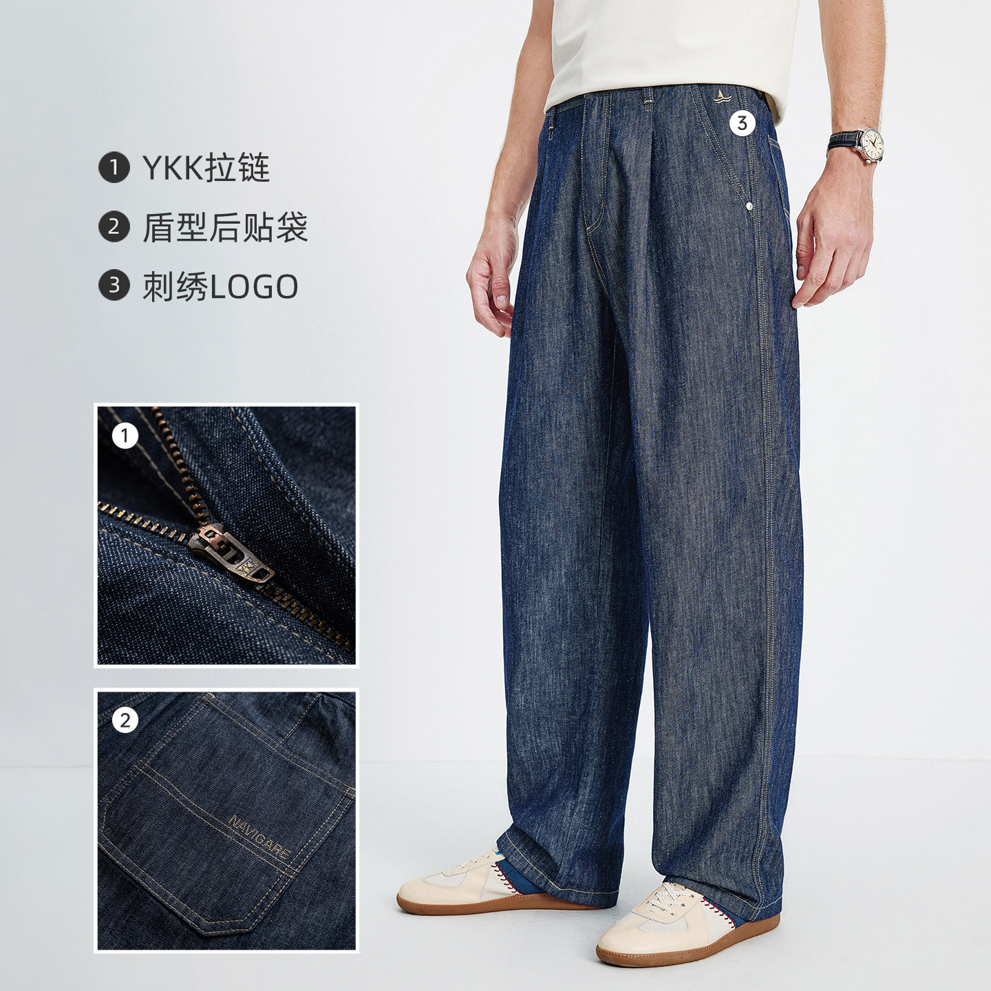 Navigare意大利小帆船棉麻薄款牛仔裤男2026春夏新款丹宁阔腿裤