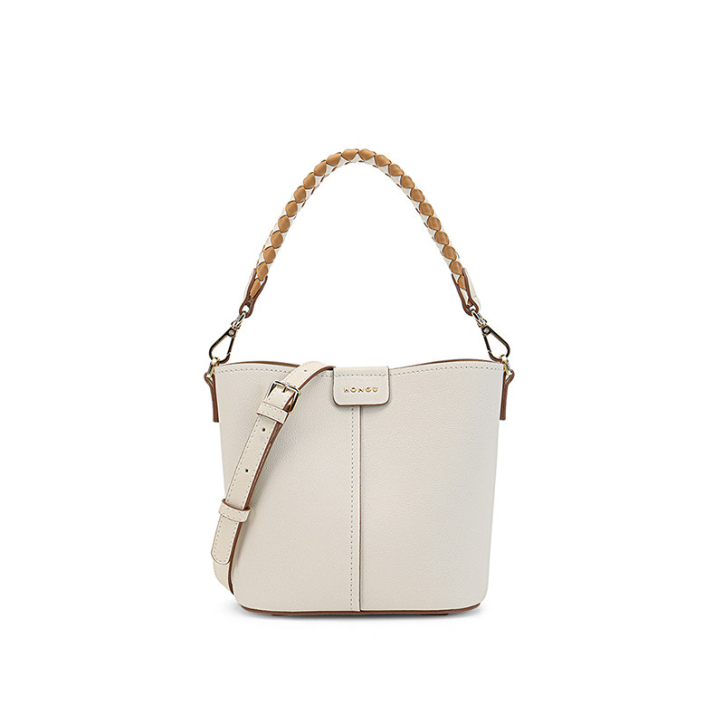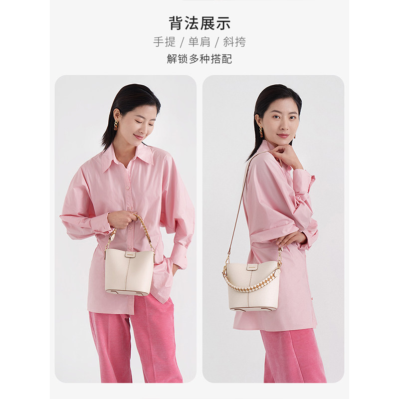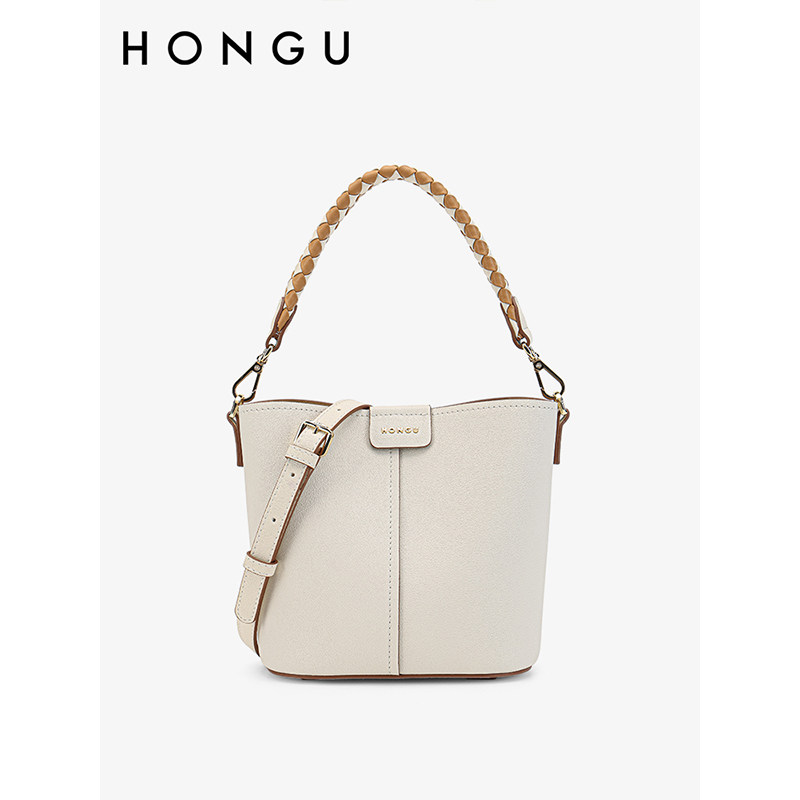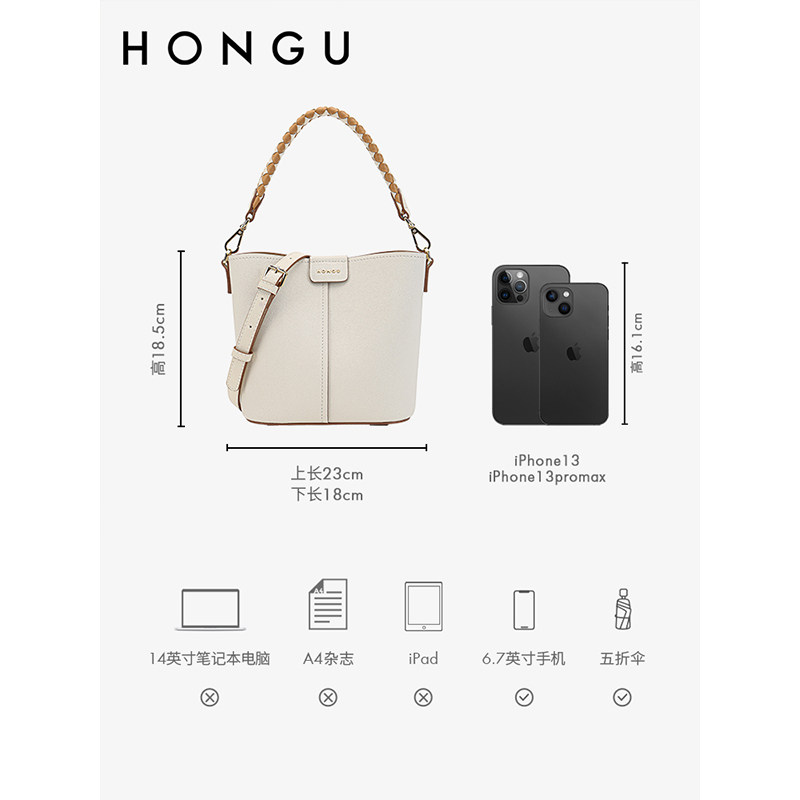 红谷包包女士新款牛皮时尚单肩水桶包百搭大容量斜挎手提包女包