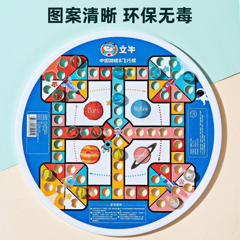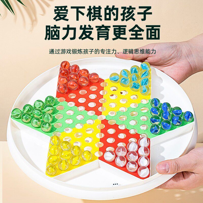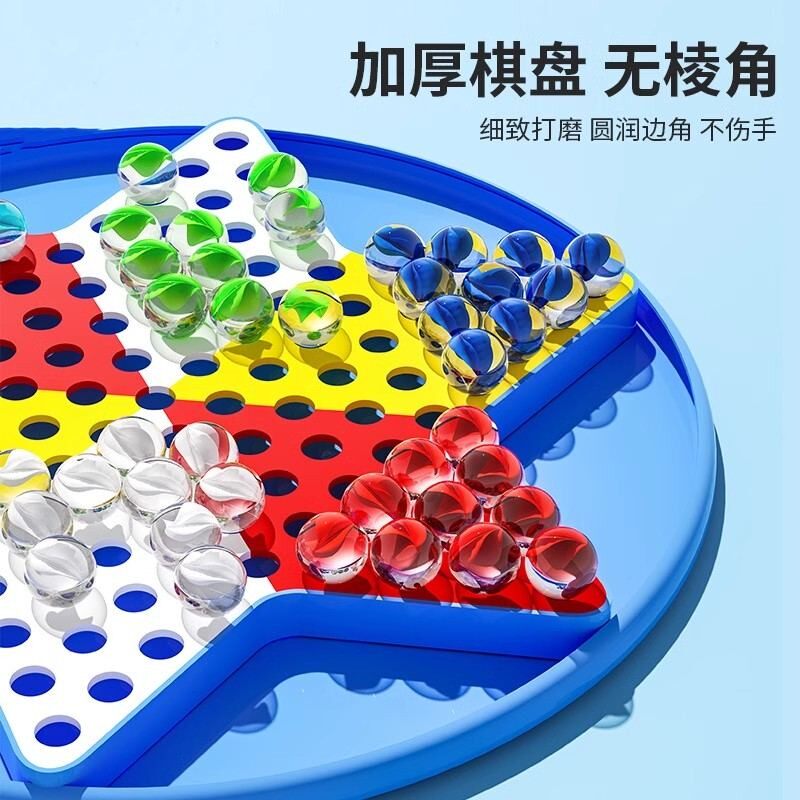 跳棋玻璃珠子跳棋儿童益智小学生专用成人版老式飞行棋二合一棋盘