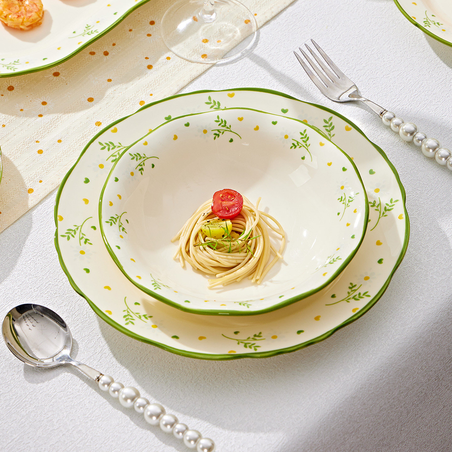 创意ins风高级感荷叶边陶瓷盘意面盘深盘西餐盘水果沙拉碗酸奶碗